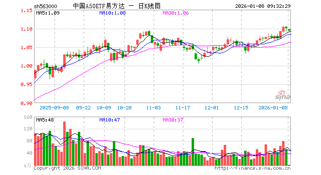 1月8日,中国A50ETF易方达(563000)开盘跌0.27%,报1.097元。中国A50ETF易方达(563000)重仓股方面,宁德时代开盘跌0.81%,紫金矿业跌1.42%,工业富联涨0.25%,贵州茅台跌0.00%,海光信息涨1.46%,寒武纪涨1.01%,比亚迪跌0.41%,恒瑞医药涨1.80%,立讯精密跌0.92%,中际旭创跌1.37%。