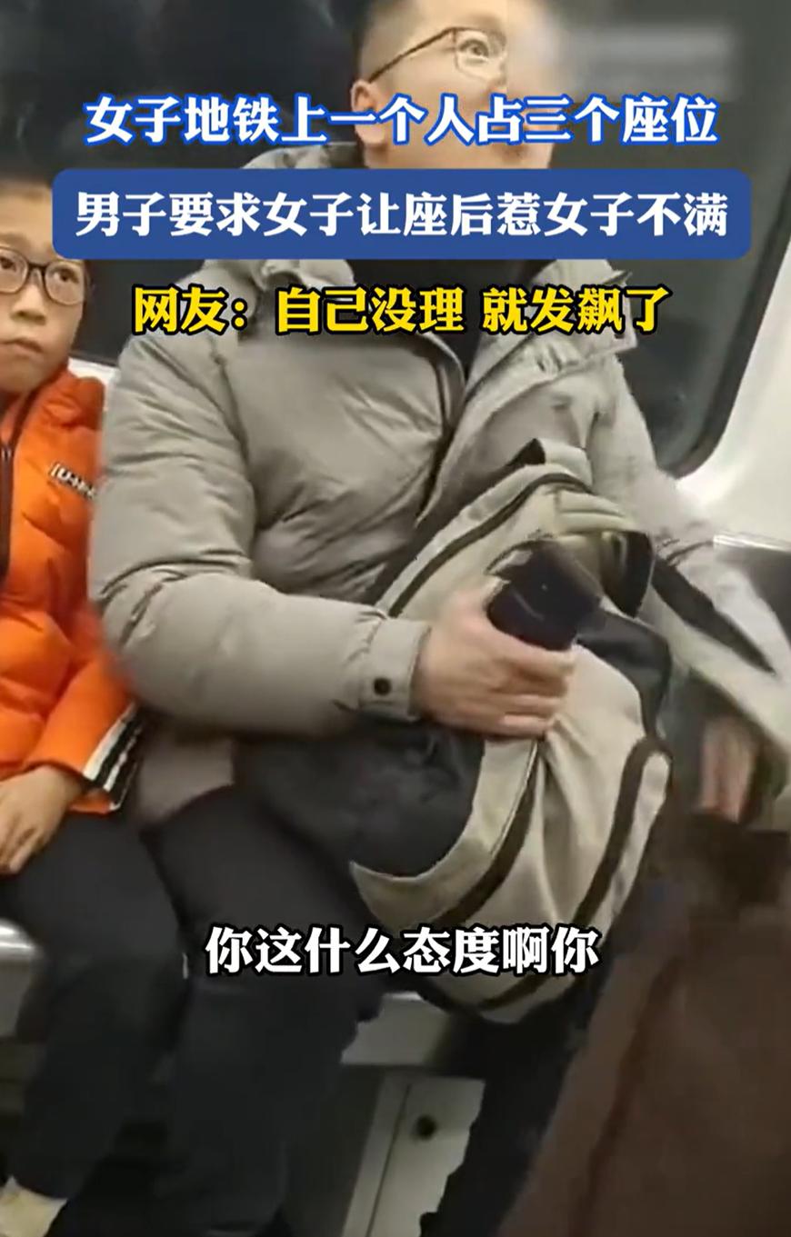 “又是一个小仙女!”一男子带孩子坐地铁,发现一名年轻女生一个人占了三个位置,他就挤了上去,没想到,女生当场就不高兴了,本想埋怨男子两句,结果却发现对方比自己更有理,于是只能情绪失控的指责对方态度有问题。网友:道理讲不过就说态度 视频中,当时车厢乘客不算多,男子带着孩子上车后,就发现一名年轻女子坐在座椅最中间,再加上包包,一个人就占了三个人的座位,男子提醒她让一下,就带着孩子坐在了其中两个位置上 女子不高兴了,本来宽敞的空间突然多了两个人,她转头就开始埋怨,说男子抢她的座位,话里话外还带着指责 可这位父亲不是忍气吞声的主。他直接反问:这三个座位哪个是你的?公共场合一个人占三个座,还觉得自己有理了?你坐好自己的位置就行,公共资源不是你一个人的。咱俩谁没素质?一个人占三个座叫有礼貌吗? 女子被说得接不上话,转而揪起态度问题:你不能好好说吗?这什么态度? 男子:我这是纠正社会秩序知不知道,对你这种一个人占三个座的人,就应该说你 女子回应:"人多的时候我会让但现在人不多",随后情绪失控,歇斯底里怒吼"你到底什么态度!滚吧你!" 不得不说,这样的对话,就是典型的“小仙女”逻辑,一开始觉得自己占理,声音比谁都大,等到被人指出问题、逻辑上站不住脚了,就立刻调转矛头,攻击对方“态度不好”。仿佛只要态度有问题,之前的行为就可以被原谅 可公共场合的规则其实很简单:地铁座位是给人坐的,不是给包坐的;是给大家用的,不是给一个人开的。就算车厢人不多,你把包放在旁边空位上,本身就传递出一种“别来坐”的排斥感。那位父亲带孩子,选择了坐下而不是站着,某种意义上也是在教孩子:公共空间的权利,该争取就要争取 想要别人的态度好,首先要自己先做到位