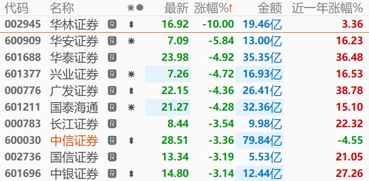 大金融板块跌势扩大 华林证券跌停