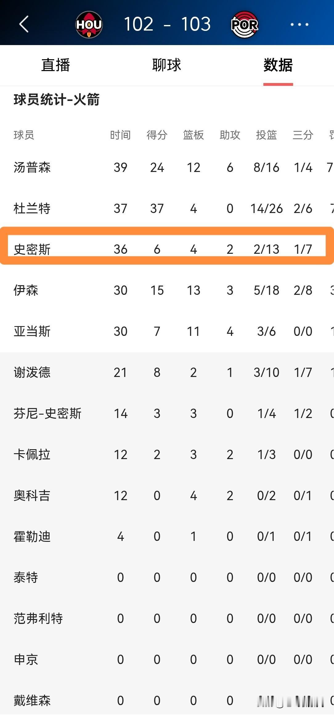 火箭大将小史密斯真是太反常了!在今天火箭客场以102:103输给开拓者的比赛中,