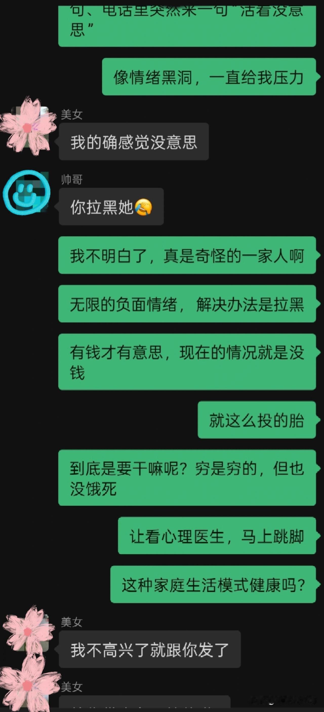 妈妈的负能量比我的生理期都稳定 经常这样,突然发表“活着有啥意思”言论,有时是微