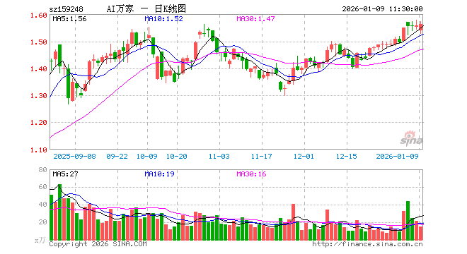 1月9日,截止午间收盘,人工智能ETF基金(159248)涨0.32%,报1.563元,成交额2317.36万元。人工智能ETF基金(159248)重仓股方面,新易盛截止午盘跌2.23%,中际旭创跌1.66%,寒武纪跌0.37%,澜起科技跌0.06%,中科曙光跌0.24%,科大讯飞涨0.71%,豪威集团跌0.69%,海康威视涨0.03%,浪潮信息涨1.91%,金山办公涨1.67%。