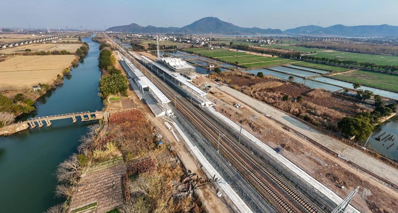 萧甬|宁波城际牟山站1月 牟山站站房主体建设基本完成,站台已基本建设完成。 站房附近进站地面道路已经平整,与干线道路地面还在恢复中。 站台规模2台4线,2正线2侧线,侧线枕木与道渣已经基本处理完成,侧线立杆已完成两端龙门架。 侧线还未接拨正线道岔。 宁波城际 牟山 宁波 轨道交通 火车
