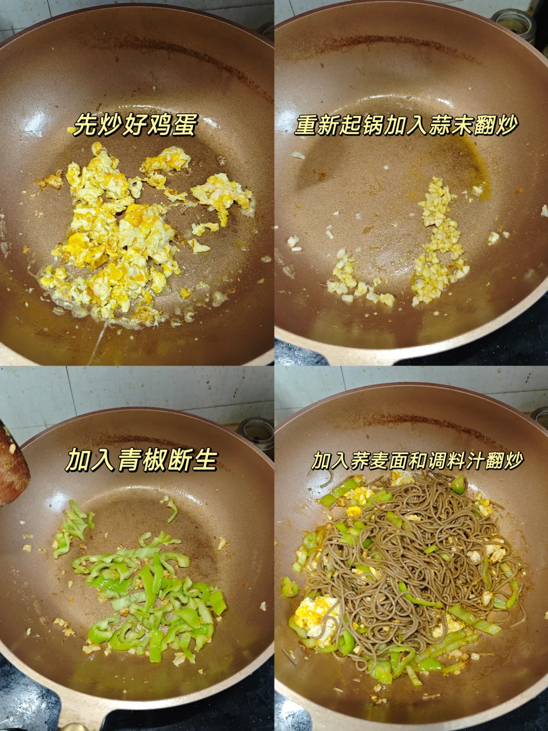 📆今日份减脂美食~鸡蛋青椒荞麦面 食材简单,做法也简单,重点是好吃还不胖诶 🌵食材 荞麦面 青椒 鸡蛋 🌵方法步骤 1⃣️荞麦面煮熟过凉水 2⃣️锅里重新起锅,加入蒜末炒香,加入青椒炒断生。 3⃣️加入荞麦面和酱汁收汁就可以啦!! 😋5分钟解决,真的是简单的晚餐,姐妹👭们都吃起来!!