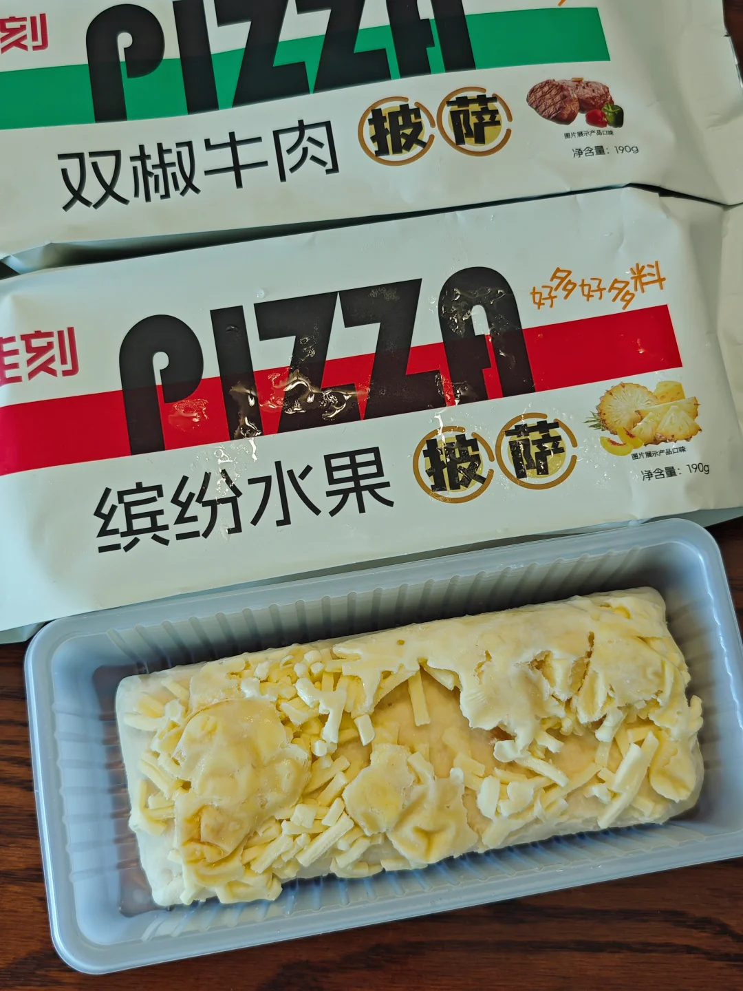 真的不是外卖,在家也能做的披萨! 做法也方便,只需要一个空气炸锅,180度,9~10分钟就好了! 有三款口味,榴莲是带真榴莲果肉的,牛肉也是颗粒分明的,还有缤纷水果,作早餐作夜宵美食都太适合不过了!