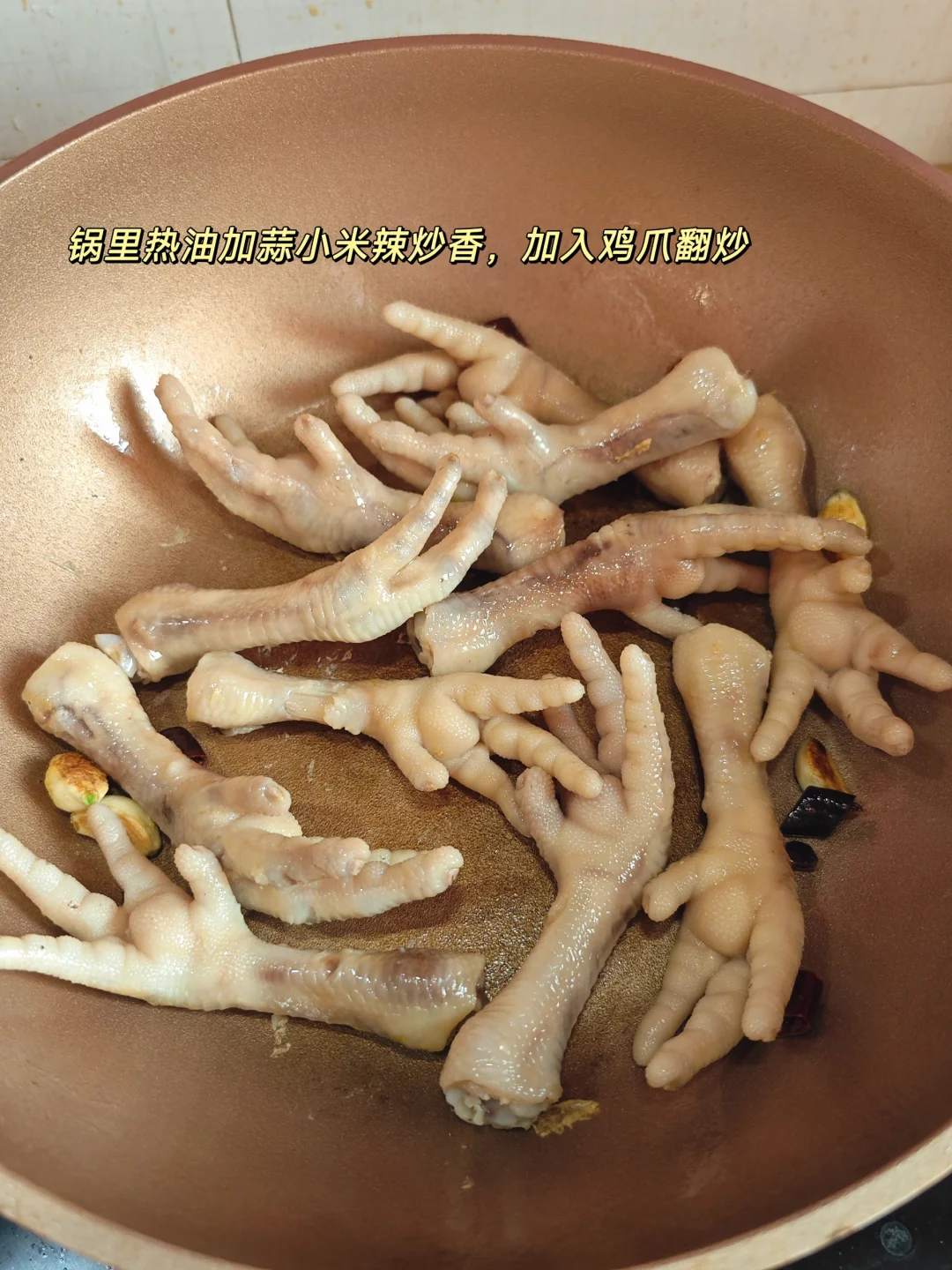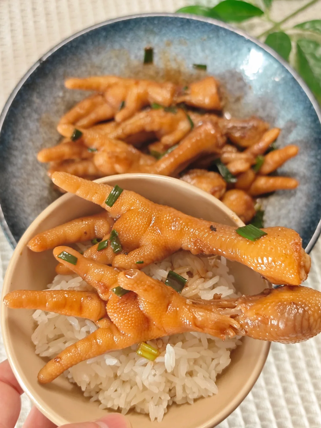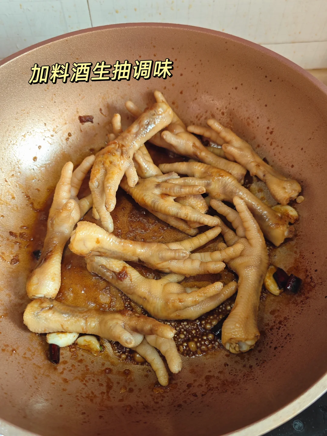 真的是简易版快手红烧鸡爪,鸡爪只剪了指甲,剁都没有剁两半,适合懒人学做饭吃!! 🍃准备食材 鸡爪 葱 姜 蒜 小米辣 🍃做法: 1⃣️鸡爪剪去指甲洗干净,冷水下锅焯水,放入姜🫚料酒去腥。 2⃣️重新起锅加入蒜和小米辣炒香,再加入鸡爪翻炒,加料酒,生抽调味。 3⃣️加水或者可乐没过食材,炖煮15分钟。 4⃣️最后撒上葱花收汁即可。
