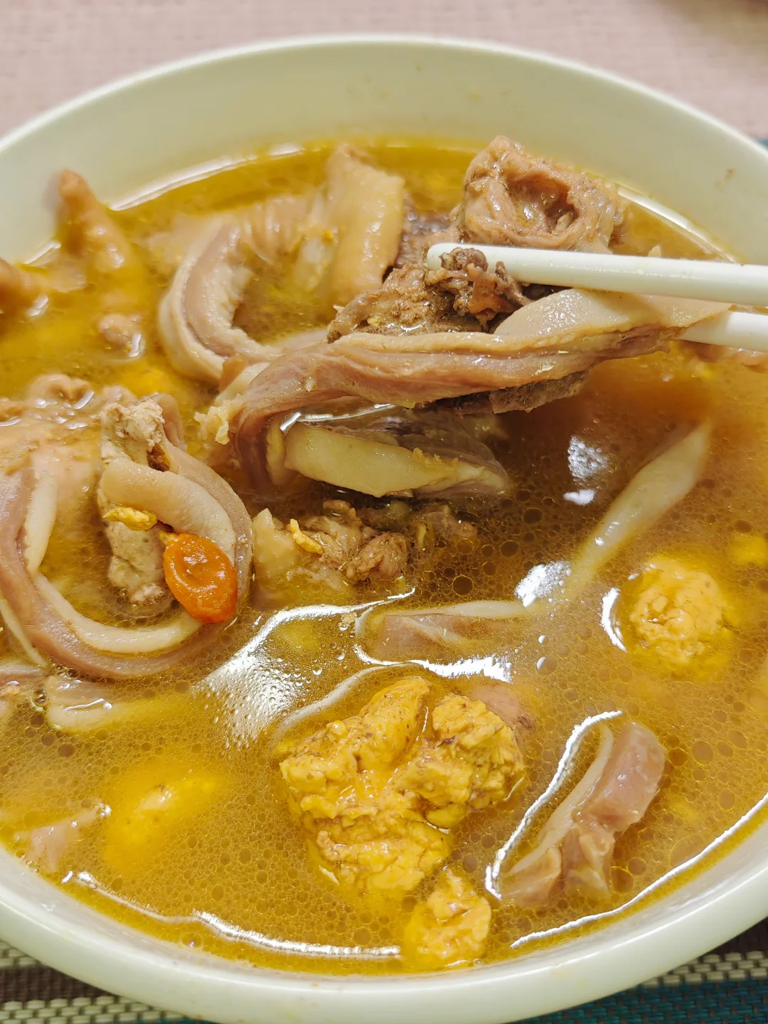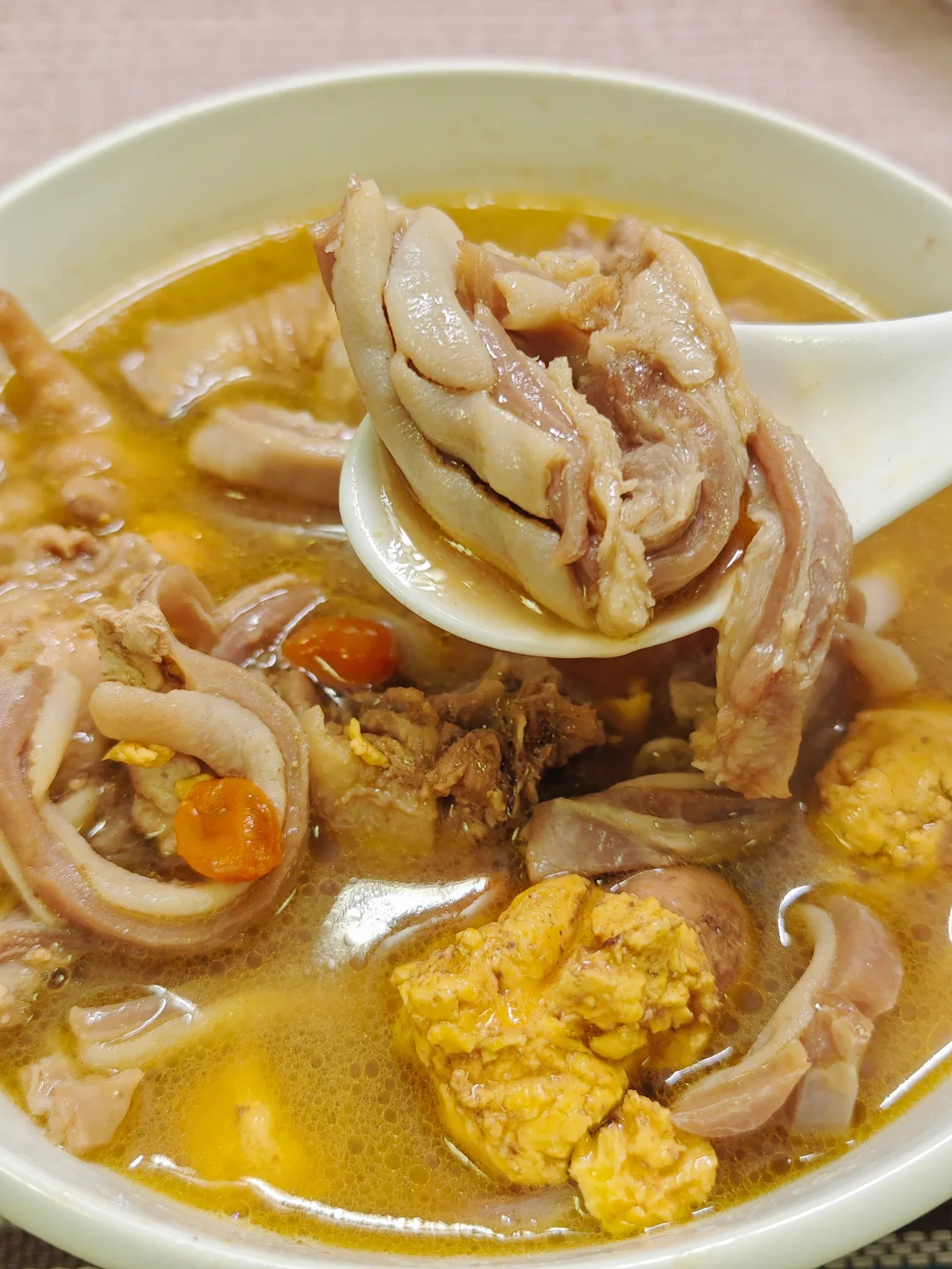 自己家煮的猪肚鸡汤真的很难变白 不过味道还是同样好吃的 营养又健康 一人食吃不完,第二天可以煮泡饭或者面条🍜也好吃 tips:猪肚可以提前炖煮下,鸡肉选新鲜鸡肉,泡去血水