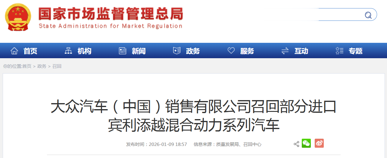 日前,大众汽车(中国)销售有限公司根据《缺陷汽车产品召回管理条例》和《缺陷汽车产品召回管理条例实施办法》的要求,向国家市场监督管理总局备案了召回计划。