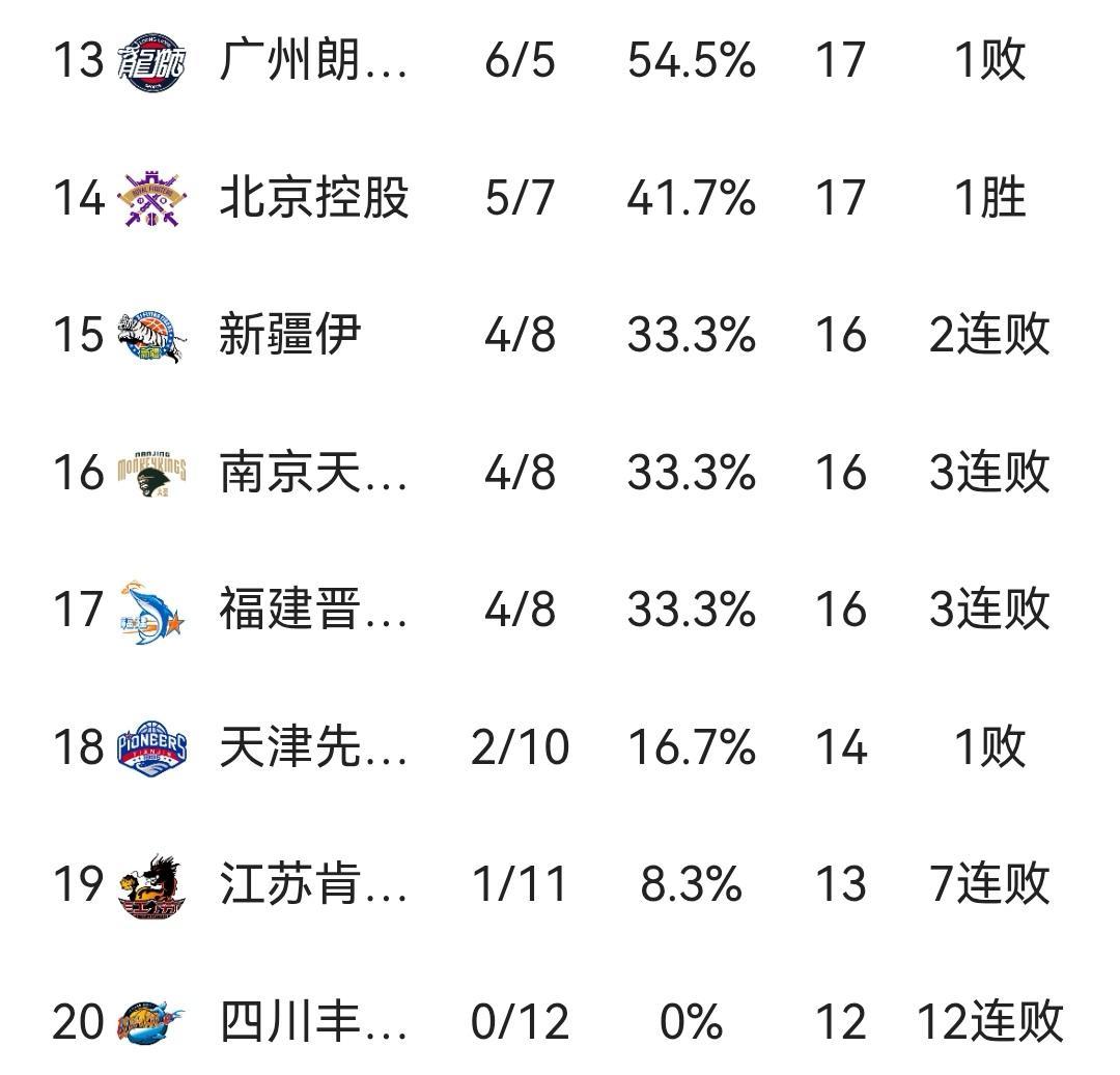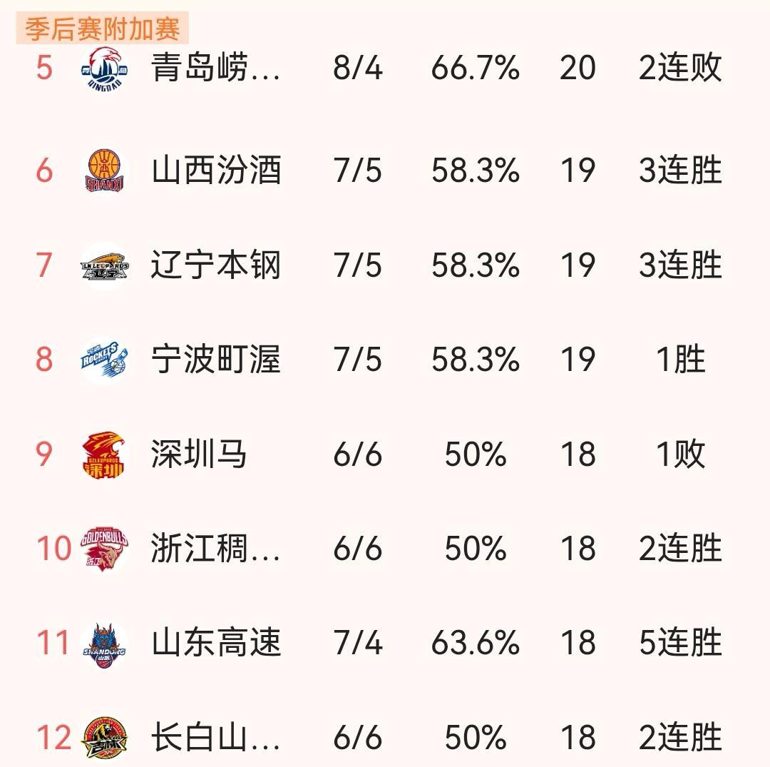 广厦大胜新疆,山东绝杀北汽,青岛负于上海,广东险胜深圳,CBA十二轮之后看排名 今晚CBA第十二轮赛事全部落下帷幕,其中四场焦点之战,浙江方兴渡主场87:79大胜新疆伊力特;而北京北汽最后4.7秒被山东高速绝杀,主场85:87落败;青岛崂山73:90不敌上海久事;广东东阳光110:105险胜深圳马可波罗。 另外,浙江稠州胜广州朗肽、长白山恩都里胜福建晋江、山西汾酒胜天津先行者、北京控股胜四川丰谷、宁波町渥胜南京天之蓝,辽宁本钢胜江苏肯帝亚。 此轮之后,按照积分排名,位于季后赛区域1~4名的队伍依次为上海久事、浙江方兴渡、广东东阳光和北京北汽。 位于季后赛附加赛区域内5~12的八支队伍为青岛崂山、山西汾酒、辽宁本钢、宁波町渥、深圳马可波罗、浙江稠州、山东高速和长白山恩都里; 位于季后赛附加赛区域外13~20名 的队伍依次为广州朗肽、北京控股、新疆伊力特、南京天之蓝、福建晋江、天津先行者、江苏肯帝亚和四川丰谷。
