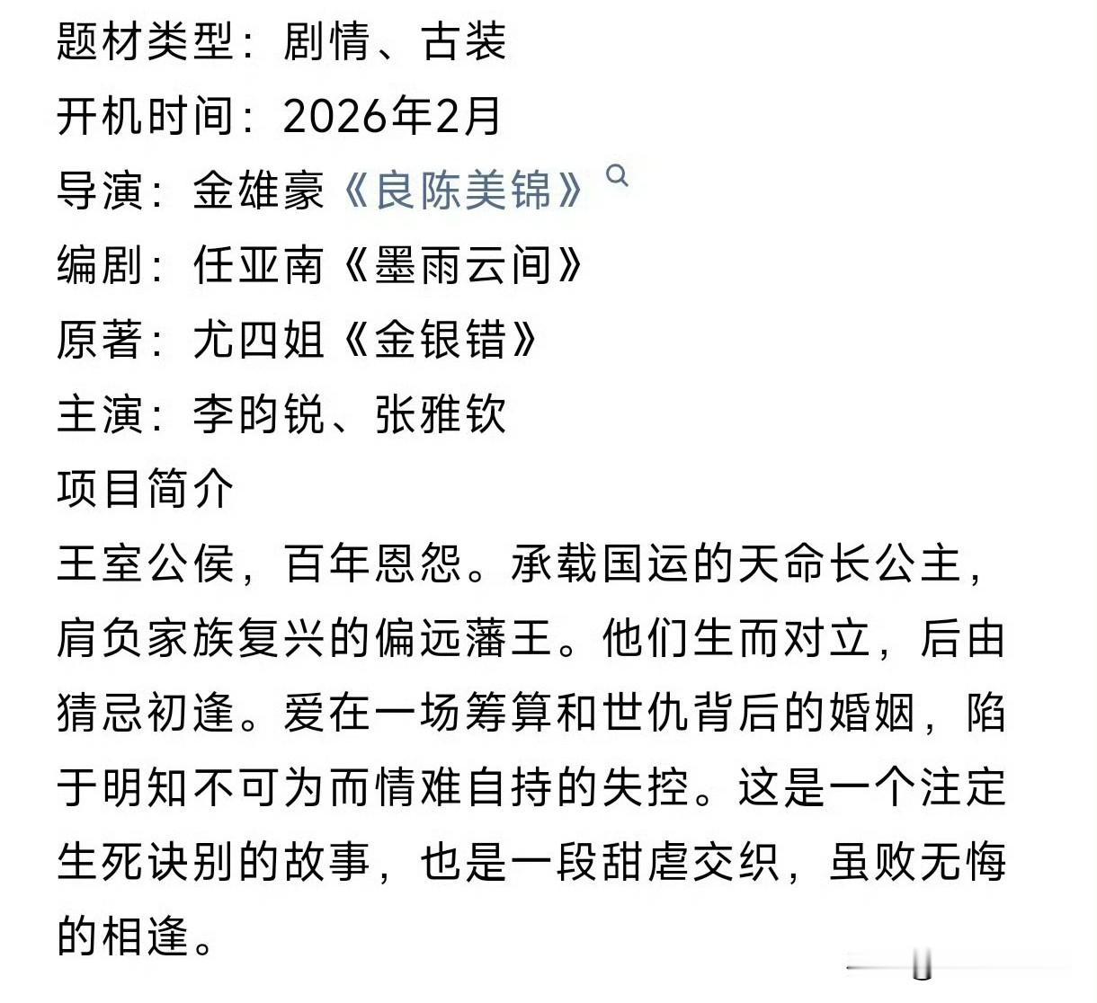 1月9日,张雅钦因杨洋拒了李昀锐女主! 张雅钦原定是李昀锐下部剧《归良辰》女主,现在是杨洋《不让江山》的女主,李昀锐这部剧3月开机,如今女主待定人选有孙珍妮,刘些宁,在我看来李昀锐不亏,孙珍妮,刘些宁的资源虽不如张雅钦,但知名度要比张雅钦高,这种临拍前选角的剧,一般被放弃的那部剧最终播的成绩要比后面选择的剧好 这里不针对杨洋,只是就事论事,张雅钦看名字看脸都不记得她是谁…… 张雅钦 杨洋