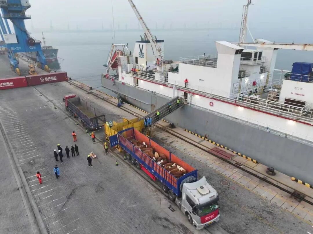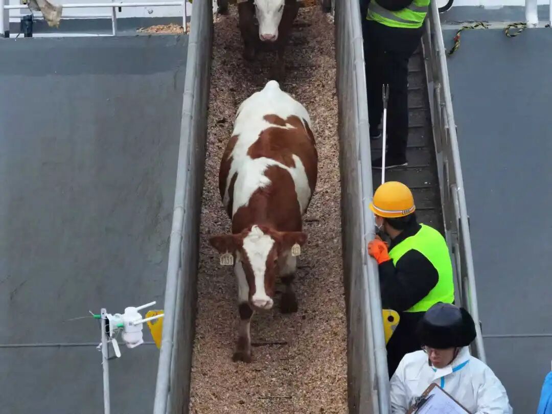 业务重启的背后,离不开口岸营商环境的持续优化与各联检单位的高效协同。海事、海关、边检等口岸单位靠前服务、并联作业,为进口活牛量身打造“绿色通道”,保障船舶到港后快速通关、高效作业。港口各生产作业单位提前周密部署,科学调配泊位资源,实现船舶“直靠直卸”,同时备妥专用卸牛平台,全面检查工属具性能,确保作业安全顺畅,并与后方隔离场地紧密衔接,构建起“口岸通关—港口作业—隔离转运”闭环管理体系。得益于各环节无缝衔接、高效联动,全船作业仅用时16.5小时,较原计划提前10.5小时,创下活牛接卸新速度,赢得客户高度认可。