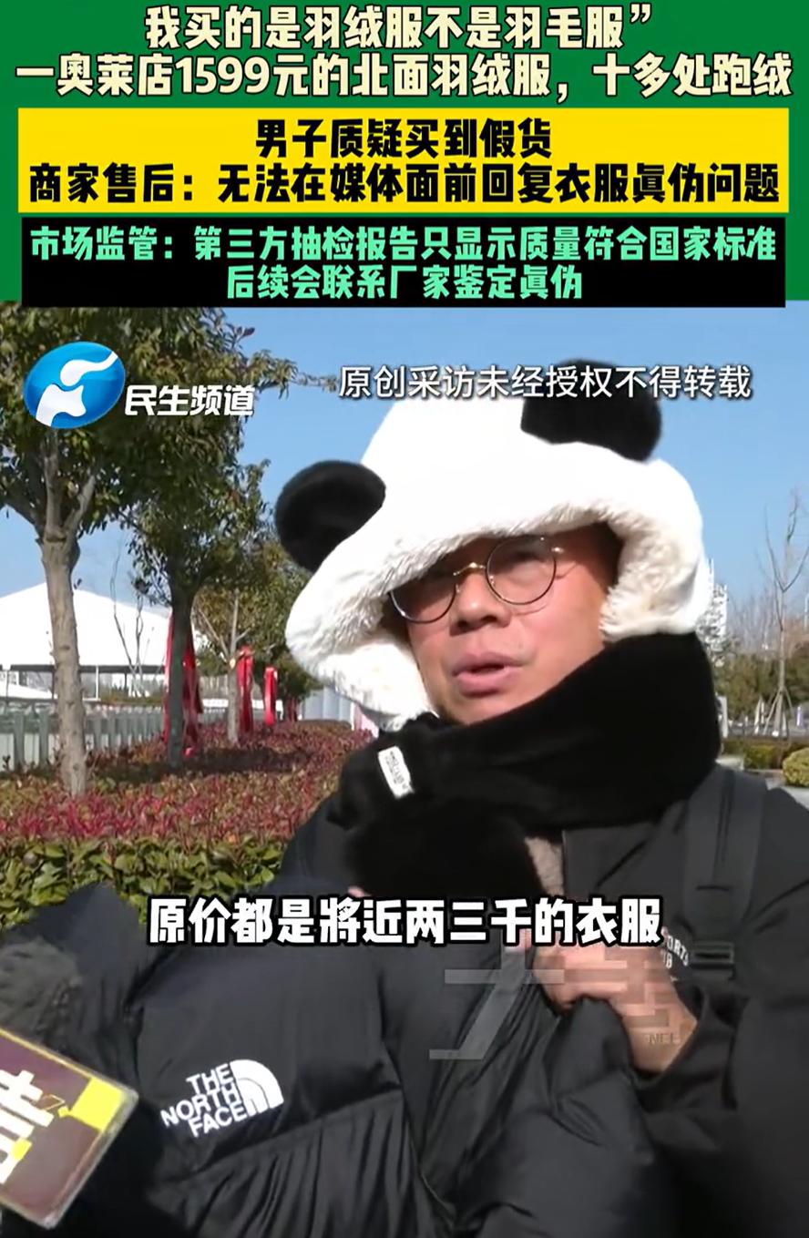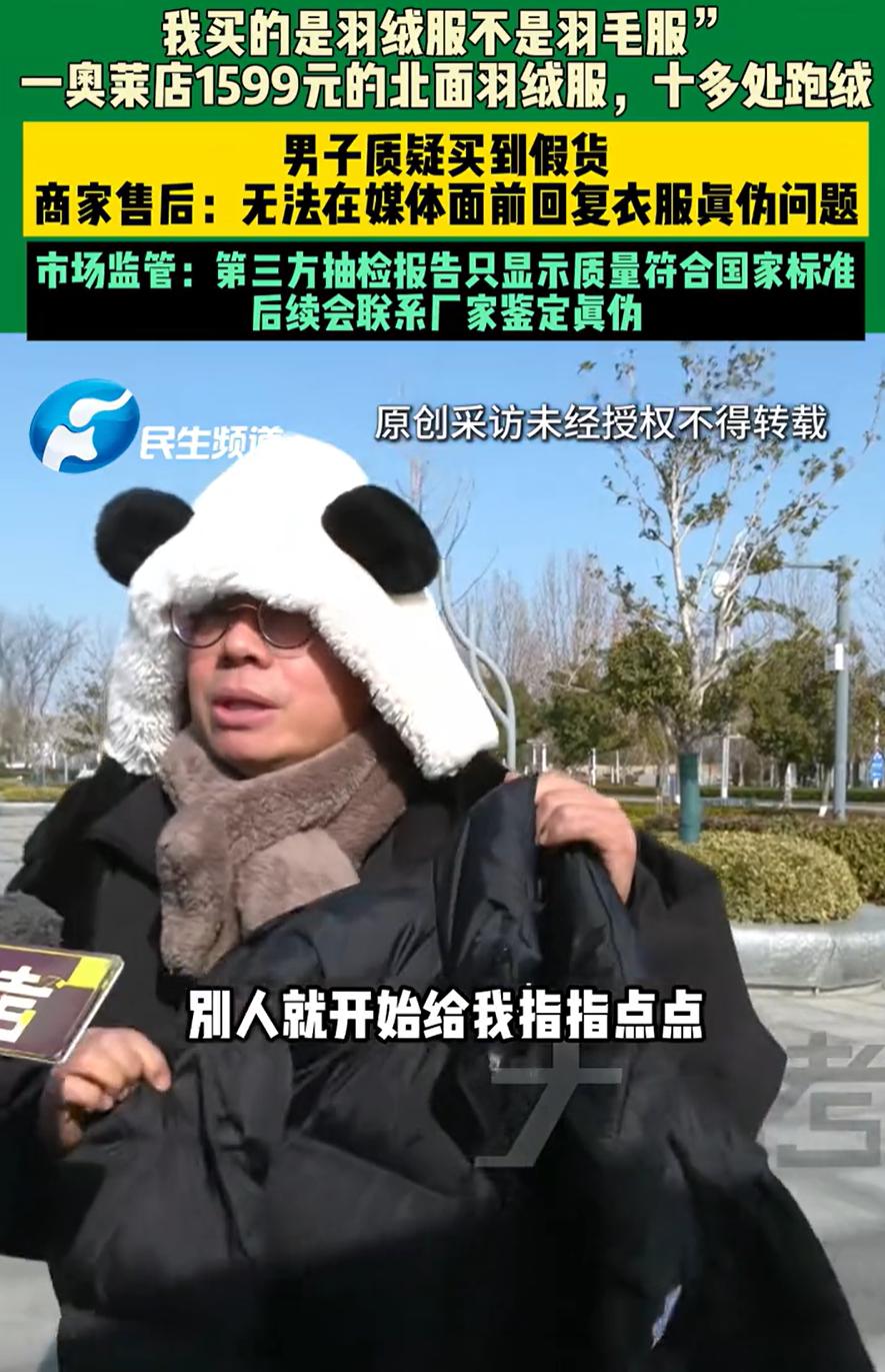 “它让我很丢面子!”河南郑州,男子在商场花1599买了一件羽绒服,可穿出去不旧,就被人指着说衣服有线头和跑绒的情况,怀疑他穿的是假货,而男子花大价格还丢了面子,这让他很难接受 李先生介绍,十二月末,他在商场买了件原价两三千的羽绒服,优惠后实付1599,可等他穿出去就遭到朋友和同事的指指点点,不是说这有线头,就是那里出毛了,说他穿的是高仿,这让他很丢面 后来他发现,羽绒服大概又十几处跑绒的情况,他怀疑商城卖给他的是假货,吐槽说“我买的是羽绒服,不是羽毛服” 随后,李先生将此事反映给市场监管部门,工作人员表示从检测报告显示这件衣服是符合执行标准的,但假冒伪劣的问题,需要厂家去进行鉴定,目前还要等消息 很多人可能没意识到,跑绒本身不等于质量问题。只要是羽绒服,尤其是轻薄款,多少都会有绒毛从缝线处钻出来,这是工艺和面料共同决定的。国家标准里,对含绒量、钻绒率都有明确范围,只要在范围内,就算合格。市场监管部门给出的检测结论,也是符合执行标准 当然,花一千六买的衣服,穿出去反而丢了面子,这事放谁身上都憋屈。现在买东西,尤其衣服这类贴身穿的,光看吊牌上的执行标准还真不一定够。有时候指标达标了,但工艺细节、品控把关没跟上,穿着体验就是另一回事 我觉得这个事也是一个提醒,商场渠道不等于零风险,合格不等于体验好,标准线只是底线,不是舒适线。羽绒服这种品类,本身就存在跑绒概率,商家在销售时很少主动说明,消费者又往往把价格和品质完全画等号,误会就容易出现 站在消费者角度,维权并没有错。哪怕最终鉴定不是假货,也可以围绕做工瑕疵、穿着体验去协商退换。站在商家角度,光拿检测报告说事,很难真正平息情绪。很多纠纷并不是对错问题,而是期待没有被正视