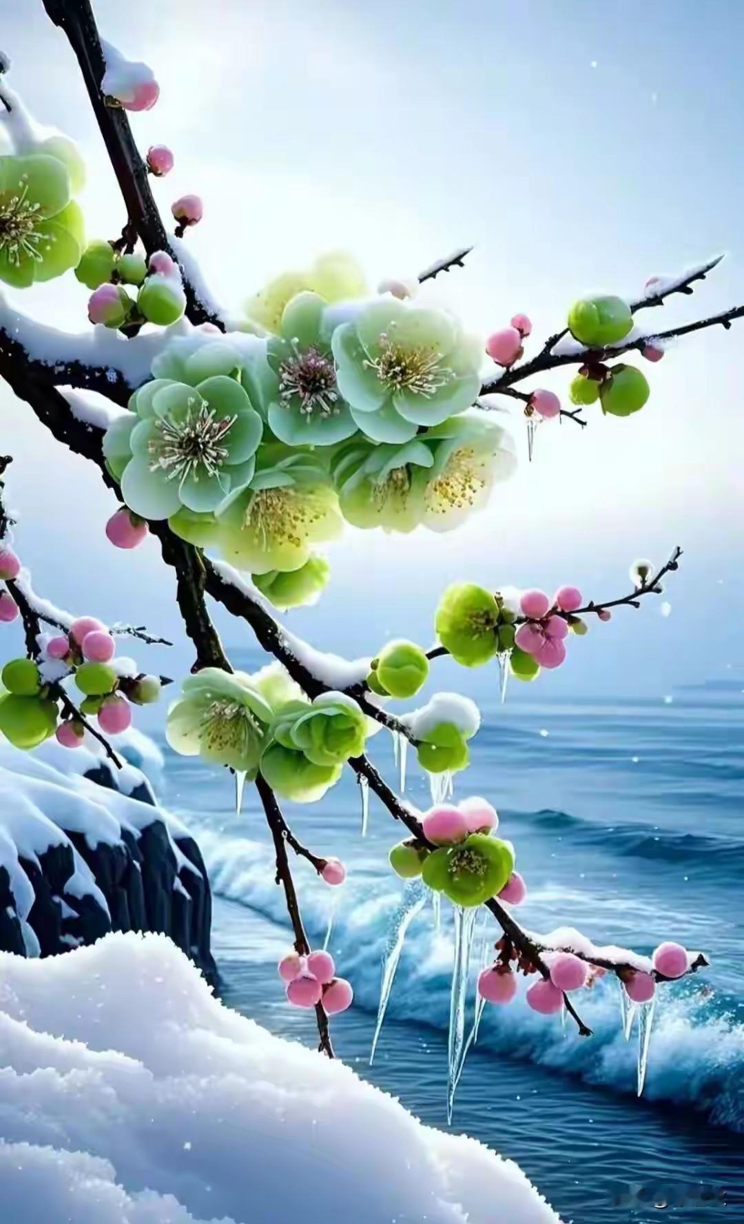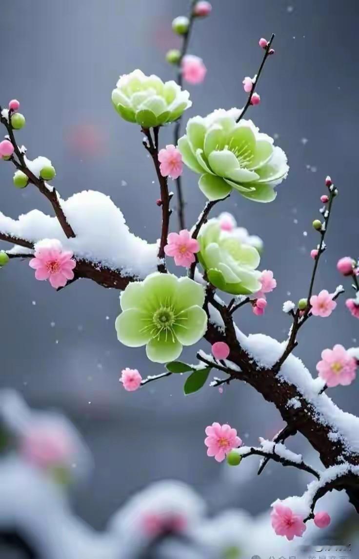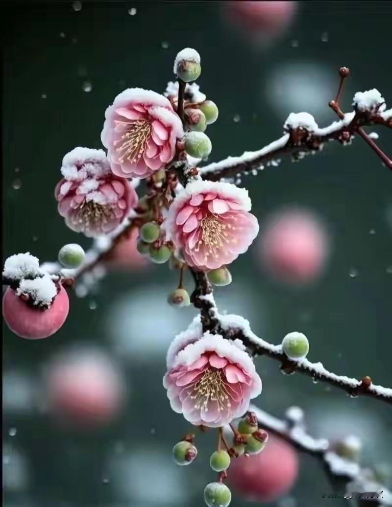 我问寒梅几度开 寒梅答我耐霜来 傲雪寒梅花自开 琼花飞舞暗香来