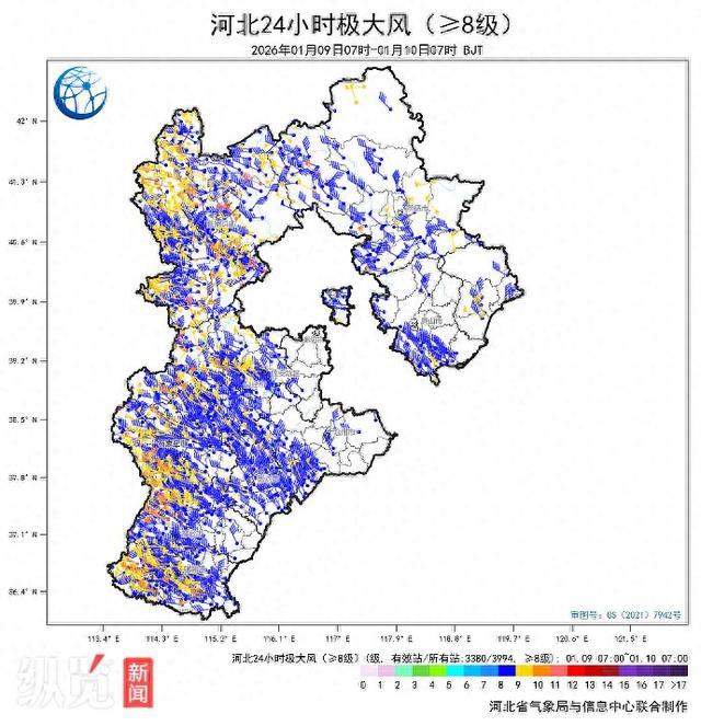 纵览客户端1月10日讯(记者杨佳薇、谭悦)本周,河北天气舞台上演了“极速变脸”。受冷空气影响,河北遭遇大风剧烈降温天气,多地出现7级以上大风。据河北省142个国家级气象站数据统计,1月9日7时至10日7时,全省大部地区风力较大,共有85个国家级气象站出现7级以上大风,其中内丘县风速最大,瞬时风力达11级。