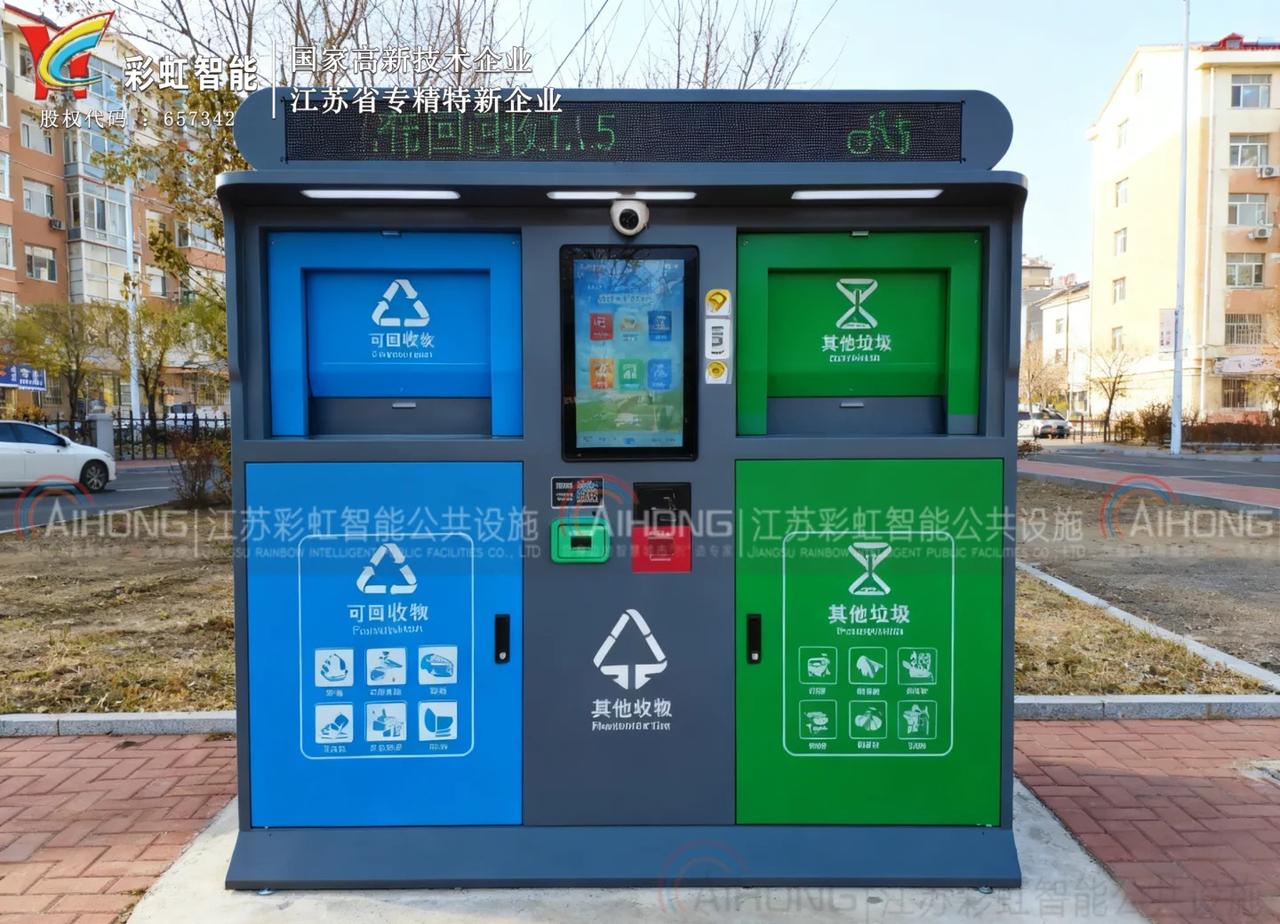 辽宁省葫芦岛市绥中县的双投口智能回收箱科技感拉满💙 绥中县街头的这款智能回收箱设计超亮眼!深灰底色搭配蓝绿撞色,视觉冲击力十足,双投口分别对应可回收物与其他垃圾,大屏触控、扫码投放的操作简单又便捷,分类指引也标注得清晰易懂~ 小小的回收箱藏着城市环保的巧思,绥中县把智能垃圾分类落到实处,让环保这件事变得更轻松高效👏 绥中县智能回收箱 葫芦岛环保黑科技 双投口回收箱 垃圾分类智能化 智能回收箱 回收箱 源头工厂 源头厂家 源头实力厂家