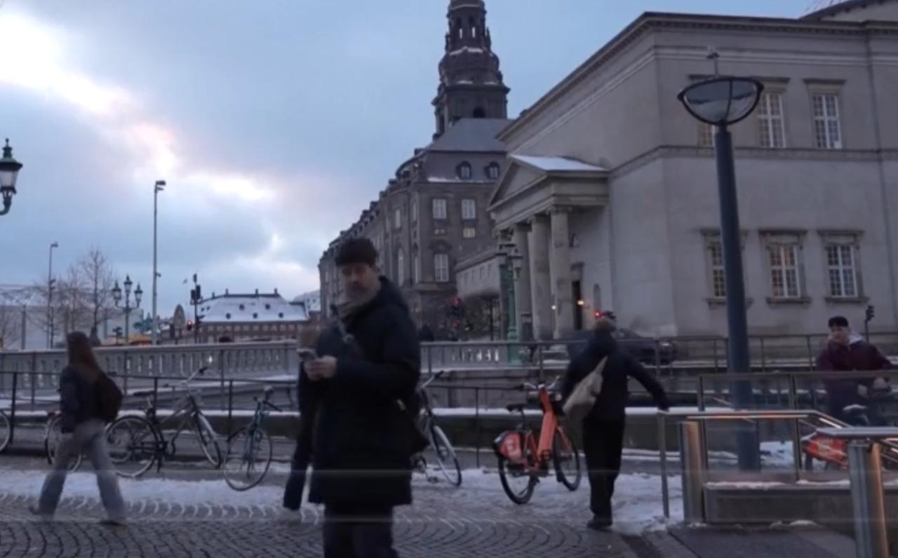 芬兰赫尔辛基的庄重建筑立在清冷的街头,丹麦哥本哈根的河道旁,彩色老建筑覆着薄雪勾勒出北欧风情。然而这份宁静被打破,丹麦民众拉尔森、雅各布接连发出质疑与震惊的声音,而雪地上严阵以待的军警、聚集的人群,更让北欧街头的这场风波,透着令人不安的凝重与未知。