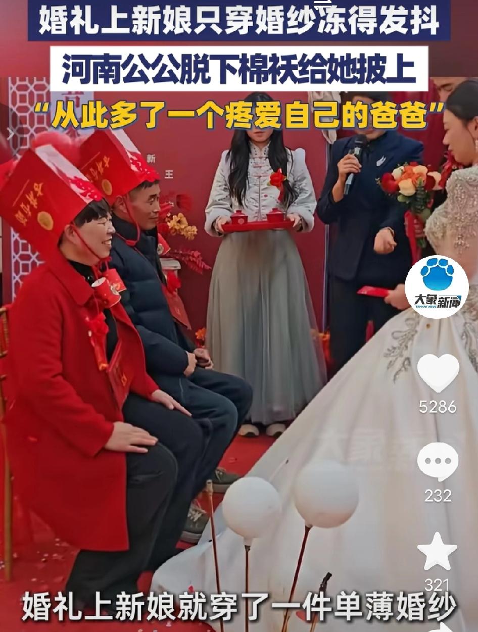 河南周口,零下寒冬,新娘穿婚纱冻得发抖,公公脱棉袄裹住她的一句话,看哭全网!戳中