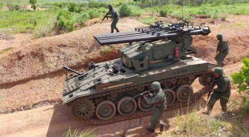 委内瑞拉实验型反坦克自行火炮Maisanta YZR。 该车辆以法国设计的AMX-13轻型坦克的底盘为基础。它的主要武器是六门并排安装的M40A1无后坐力炮。每门炮都配有一根106毫米膛线炮管和带排气喷嘴的活塞式炮闩。炮管上方还安装有一挺大口径M8C型观测步枪。