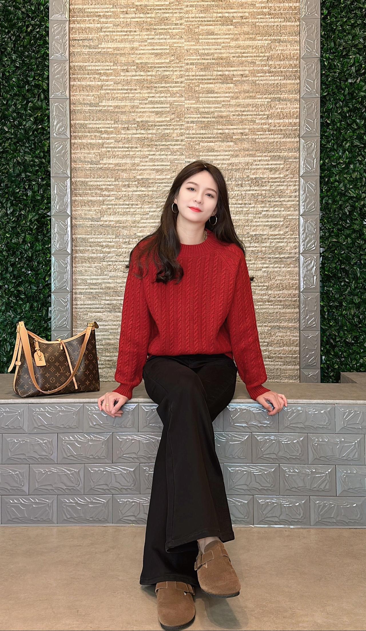 爱别人适可而止爱自己全心全力爱你老己红色毛衣 冬季穿搭 女装