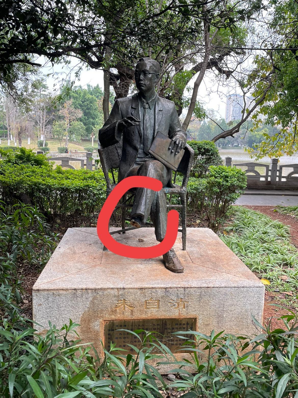 蒙自 朱自清的脚怎么没有了?蒙自文旅最靓丽的名片是西南联大分校。西南联大分校文学系的泰斗便是朱自清。所以将朱自清的铜像铸在西南联大旧址对面的公园里。可是朱自清的脚却不知道为什么少了一只。是被偷了去卖钱了吗?应该没有收购站的老板敢收吧?或者就是专门使坏?这也太坏了吧?不知道朱自清的脚丢了多久了,还是尽快找回来安上吧?毕竟到蒙自旅游的人都会去一下西南联大,都会去瞻仰朱自清先生的 我新发布的内容被官方推荐啦!👍你也快来发布一条吧!带