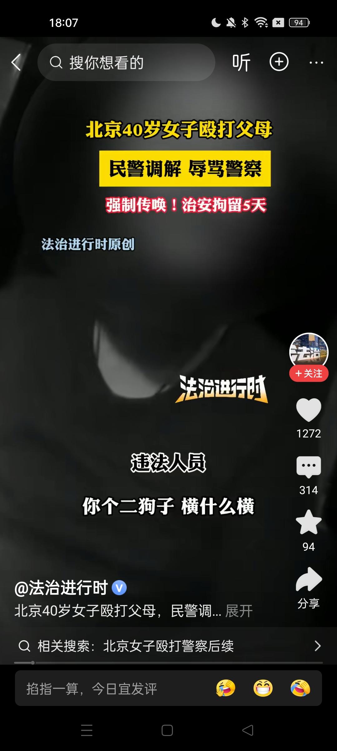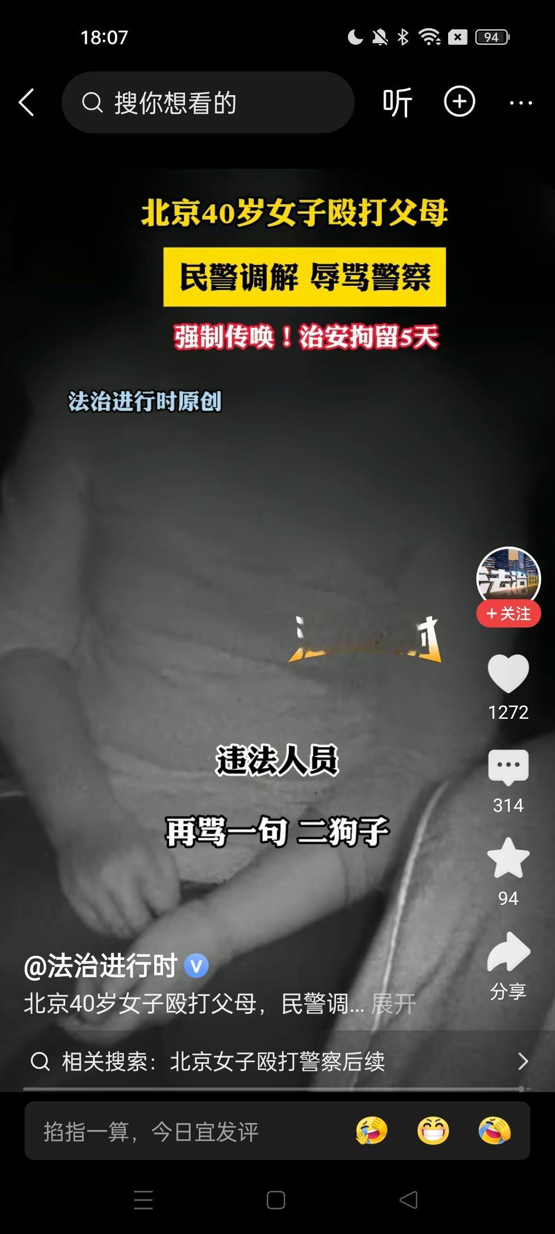 都说女儿是爸妈贴心的小棉袄,北京这位40岁的女子,却向刚刚做完脊椎手术,体内还有钢钉的老母亲举起了拳头! 又打爹又骂娘,老两口无奈之下报了警。没想到警察来了,她比警察还横,张嘴就辱骂对方‘’二狗子‘’!警察制止,说你再骂一句,她还果真又骂,最终果然进去了! 现在剩下老两口在家里,后悔莫及,当初亲着惯着溺爱着,把孩子养歪了,现在不仅敢跟自己动手,还敢跟警察叫板,别说小棉袄了,简直是让人寒透了心! 希望那个女人在里面好好被教育教育,出来以后知道该怎样做人!