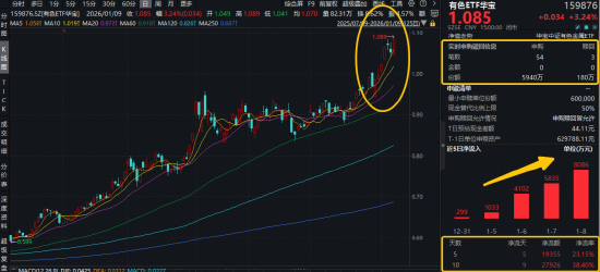 ETF放量突破上市高点,或为资金买点信号!伴随火热上涨的行情,资金积极涌入!有色ETF华宝(159876)全天获资金净申购5760万份,此前5日资金净流入呈现逐日增长态势,合计净流入1.94亿元,拉长时间来看,近10日狂揽2.79亿元!