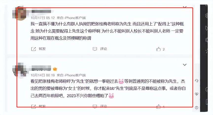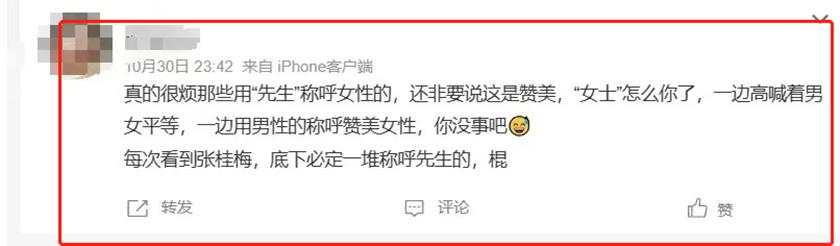 一位男性网友的转发言论中,将“张桂梅校长”称作“张桂梅先生”,这惹得一部分女性网友十分不悦,伟大的女性人物用“先生”一称,这难道是在歧视女性吗?
