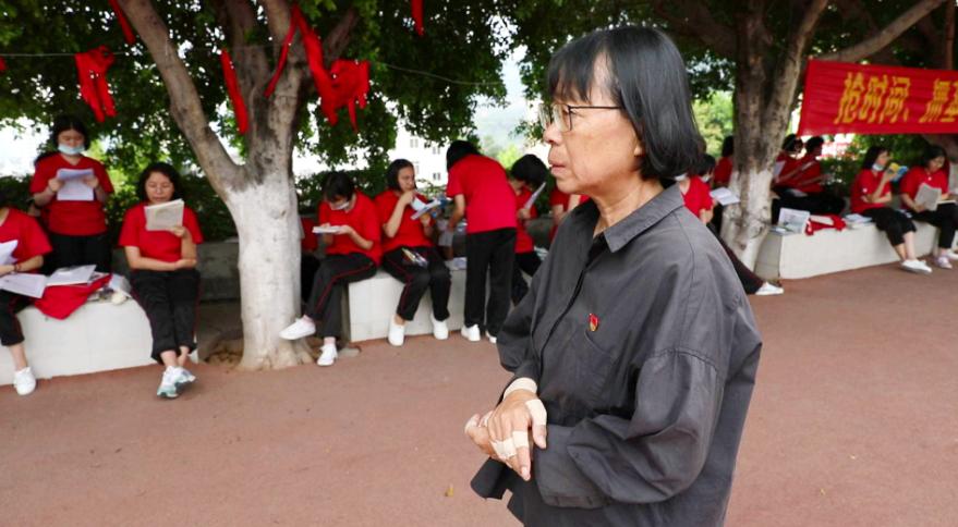早上5点钟她便拿着大喇叭将学生叫醒跑操、白天一间间教师监督学生们上课、晚上自习时刻在巡查。