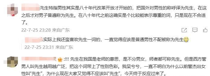 “女性要成就极高才能称得上一声‘先生’,而男的随随便便就可以用这个称呼,这难道不是赤裸裸的歧视吗?”