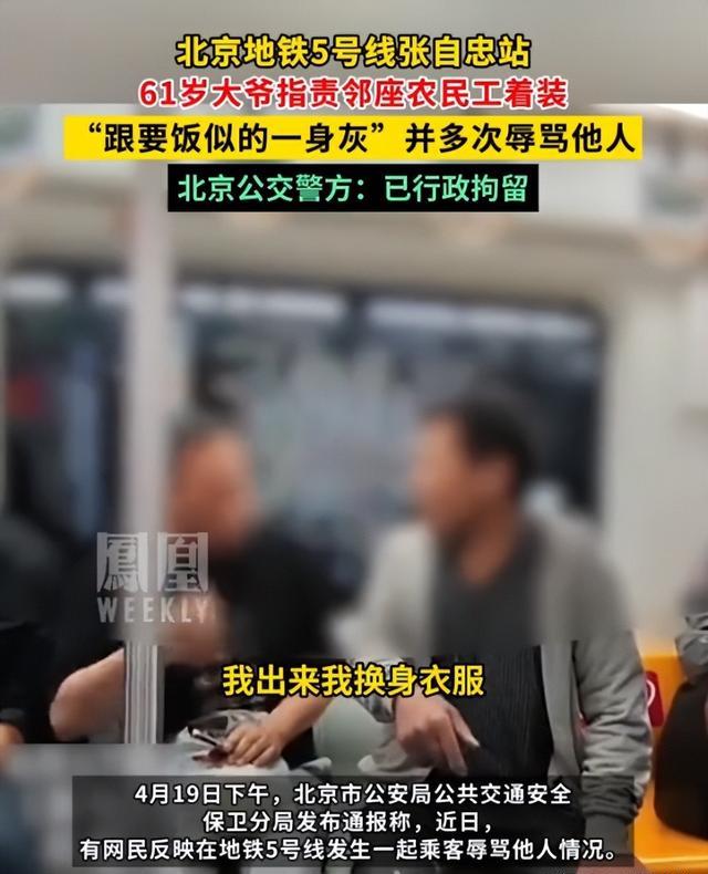“什么你就是个要饭的,这么脏做什么地铁”等等,一切肮脏恶意的语言都发泄在了农民工的身上。