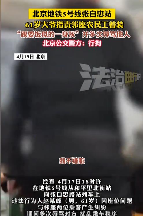 2025-04-20 14:36·上观新闻 61岁赵某峰被行拘!北京媒体:地铁辱骂乘客暴露内心的“脏”