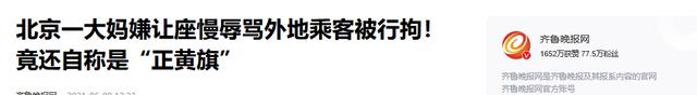 齐鲁晚报网2021-06-09 12:23 北京一大妈嫌让座慢辱骂外地乘客被行拘!竟还自称是“正黄旗”