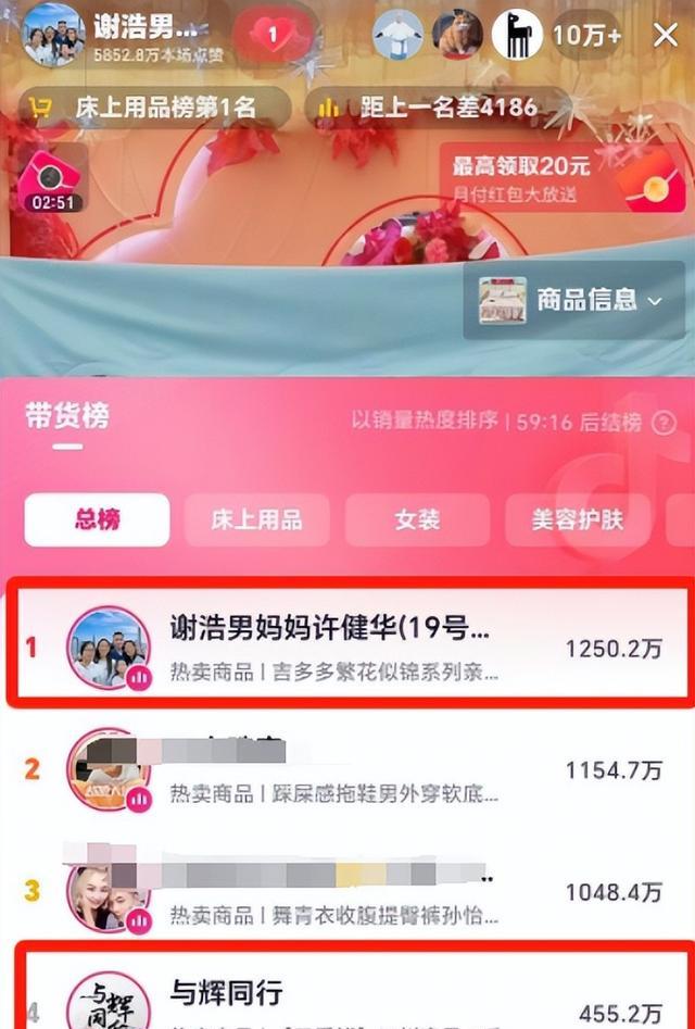直播时间的热度一度超过与辉同行的董宇辉,在所有直播带货的榜单中排名第四,这份成绩不可谓不耀眼。