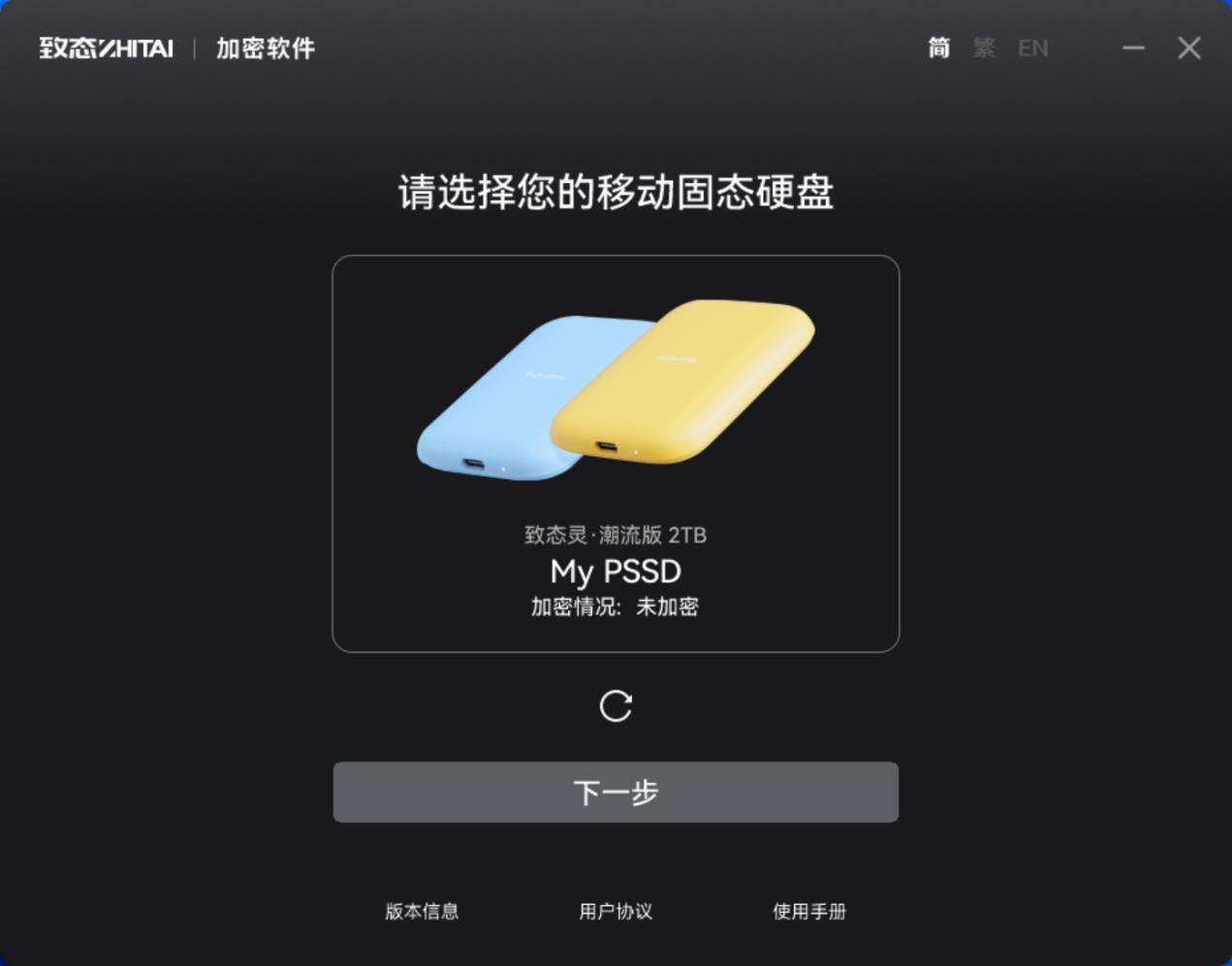同时它也提供了致态加密软件的快捷启动。致态加密软件设计非常纯粹,主要是加密移动固态硬盘,保证数据安全。