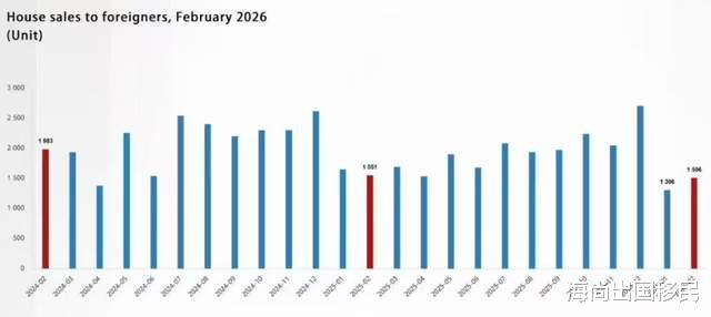2026年2月,外国人共从土耳其购置1506套房产。与去年同期相比,2月售予外国人的房屋数量有所下降,占2月所有房屋销售的1.2%。