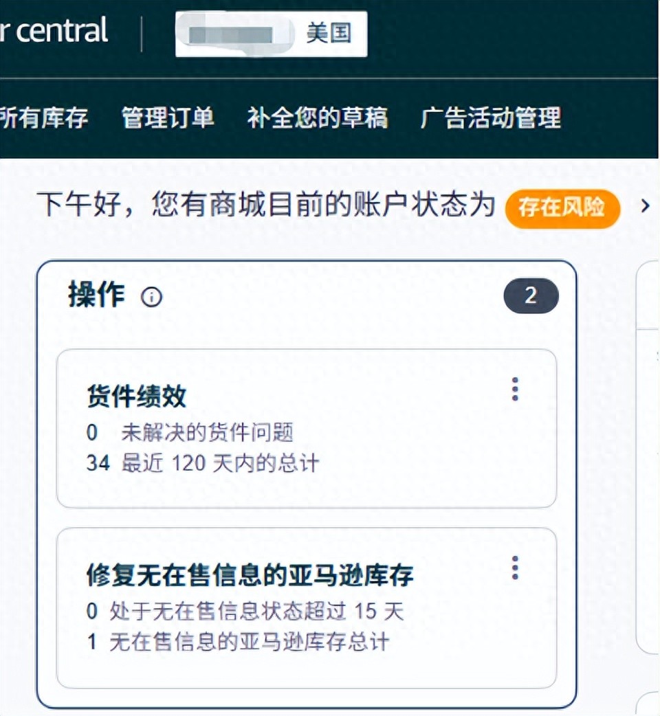 1. 在美国站后台首页左上角会看到“存在风险”,点击进去: