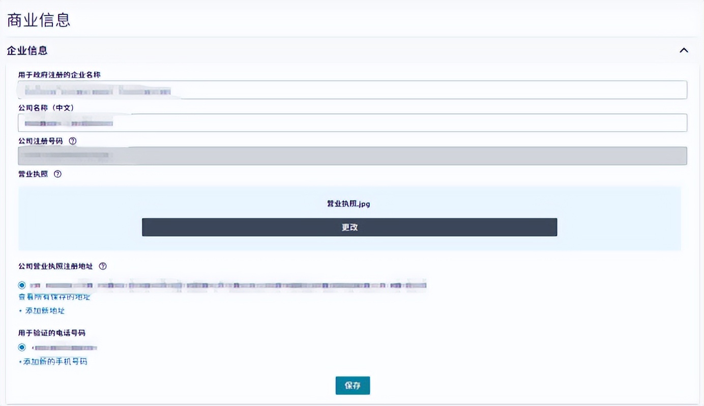 页面中有让提交身份证正面和背面的话,按要求提交,没有出现让提交身份证照片这一栏的话,就继续下一步;居住地地址这一栏选择营业执照地址;同样,手机号码没变更的话继续下一步,有变更的话,点击“添加新的手机号码”,添加一个未在其他亚马逊店铺出现过的干净的手机号码。