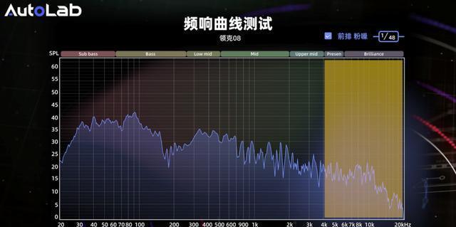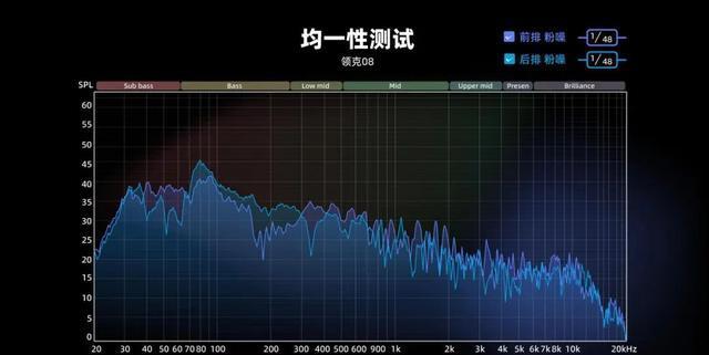 首先,咱们做了下粉噪测试,发现领克08的哈曼卡顿音响,在中频这块挺稳的,人声听起来特别真实,歌手声音的细节都能很好地呈现。