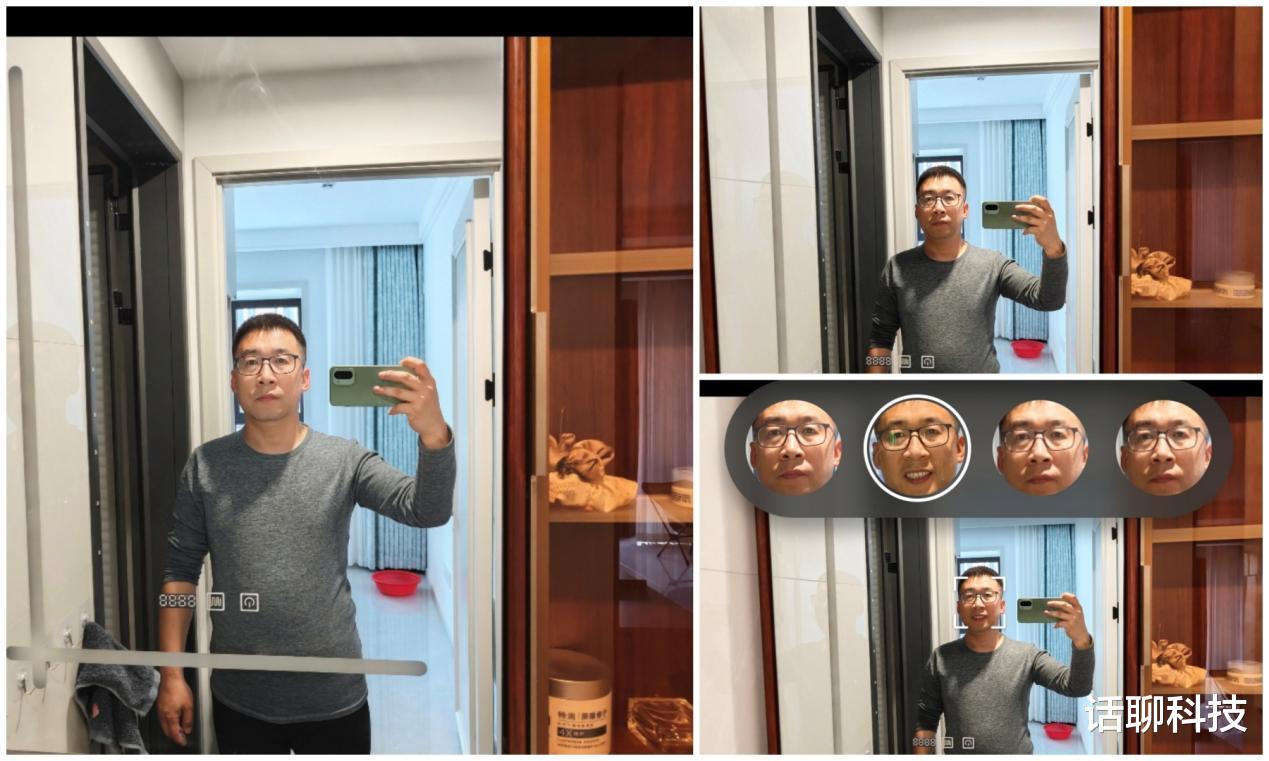 并且从拍照模式来说不仅支持实况,关键是“AI图像助手”太强大。既可以“AI成片”自动剪切画面优化构图,“AI人像补光”能优化暗光环境下人像肤色,“AI消除”去除画面中多余杂物(如路人、电线),还支持AI最佳表情、AI超清影像、AI去拖影、AI去反光等等。我这个人拍照老是状态不在线,AI最佳表情真是大救星。比如老婆查岗看我在家干什么,我拍了一张凶巴巴的照片,又觉得还是要装得“高兴一点”,不需要再次摆拍,直接AI最佳表情换图即可。