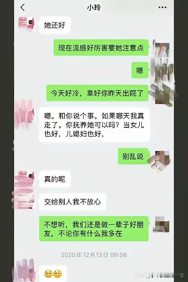 临终托孤!湖南湘潭一女子患了宫颈癌去世,临终前把唯一的女儿托付给闺蜜 湖南湘乡的一位网友发视频说,她的一位好朋友最近因患宫颈癌去世了,在去世前两人聊天的时候,她的朋友希望她能帮忙抚养女儿,可以当作女儿,也可以当儿媳妇,把女儿交给其他人不放心。 视频里的网友叫王芳,她口中的好朋友叫李娟,两人是从初中同桌一路走过来的发小。三十多年的情谊,早就超越了普通朋友的界限。李娟早年和丈夫离婚,一个人靠着在菜市场摆摊卖卤味拉扯女儿婷婷长大。 日子过得不算富裕,可每天收摊后,李娟总会给婷婷带一根烤肠,母女俩坐在出租屋的小板凳上,你一口我一口地分着吃,那是婷婷童年里最温暖的画面。 2025年春天,李娟总说小腹疼,一开始以为是累出来的毛病,咬着牙扛了两个月,直到疼得直不起腰,才被王芳硬拉着去医院检查,拿到的却是宫颈癌晚期的诊断书。 确诊后的李娟没掉过一滴泪,她第一件事是去银行查了自己的积蓄,三万两千块,那是她给婷婷攒的初中择校费。她开始托人打听哪家的卤味手艺好,想把自己的配方教给王芳,怕自己走后,没人能给婷婷遮风挡雨。 化疗的日子难熬,脱发、呕吐、浑身酸痛,可李娟只要看到婷婷放学冲进病房,就会强撑着坐起来,用沙哑的嗓子问女儿今天学了什么。 王芳每天守在医院,给李娟擦身、喂饭,替她去接婷婷放学,两个孩子在病房外的走廊里玩跳皮筋,王芳看着李娟眼里的光,心里像被针扎一样疼。 李娟走的前一晚,病房里很安静,她攥着王芳的手,力气大得不像个弥留之际的人。她说婷婷懂事,就是胆子小,晚上睡觉爱踢被子,冬天要给她穿厚袜子。 她说自己这辈子没什么本事,没能给女儿一个完整的家,把婷婷交给别人,她闭不上眼。 她说王芳的儿子比婷婷大两岁,两个孩子从小一起长大,要是以后有缘,就让他们凑成一对,要是婷婷不愿意,就当亲闺女疼着。 王芳流着泪点头,她知道,这不是简单的托付,这是一个母亲拼尽最后力气,给女儿铺好的后路。 李娟走后,王芳把婷婷接回了自己家。她没提过“儿媳妇”的话,只告诉婷婷,以后这里就是她的家。婷婷刚来时很拘谨,吃饭只夹自己面前的菜,晚上睡觉抱着李娟留下的旧枕头偷偷哭。 王芳看在眼里,每天早上特意早起给婷婷梳辫子,按照李娟生前的习惯,在辫子上绑粉色的蝴蝶结。 她把李娟的卤味摊盘了下来,学着李娟的手艺卤鸡爪、拌毛豆,出摊的时候带着婷婷,让她坐在旁边写作业,就像李娟从前做的那样。 周围的邻居有议论的,说王芳傻,自己有儿有女,还要替别人养孩子,万一以后婷婷长大了不认她,岂不是竹篮打水一场空。 王芳听到了也不辩解,她只是想起李娟最后看着婷婷的眼神,那里面装着的是一个母亲最深沉的爱和最无奈的牵挂。 她知道,朋友一场,不是嘴上说说的客套,是危难时的伸手,是生死关头的一句承诺。 婷婷慢慢开朗起来,她开始喊王芳“妈妈”,会主动帮王芳收摊,会在王芳累的时候给她捶背。 王芳的儿子也很照顾婷婷,放学路上牵着她的手,有人欺负婷婷,他会第一个站出来保护她。 日子一天天过下去,卤味摊的生意越来越好,婷婷的成绩也稳步上升,一家人的日子过得平淡又温暖。 这世间最珍贵的,从来不是锦上添花的热闹,而是雪中送炭的情谊。李娟用生命托付的信任,王芳用真心去守护。 这份跨越生死的承诺,不仅温暖了一个失去母亲的孩子,更照亮了人与人之间最纯粹的善良。各位读者你们怎么看?欢迎在评论区讨论。