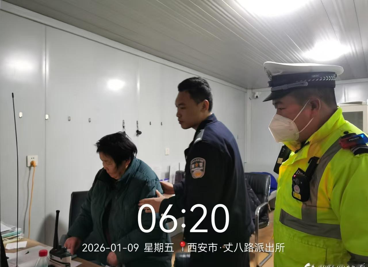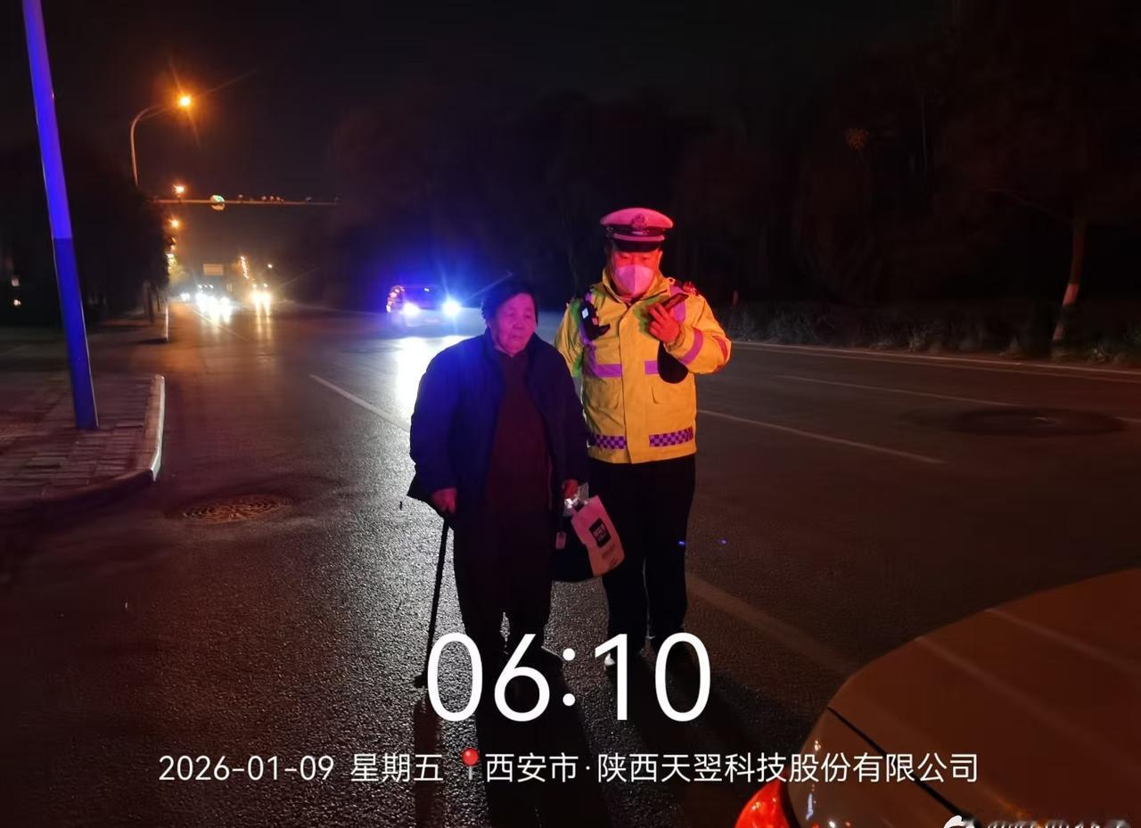【老人清晨独坐马路中央,西安交警暖心救助送其平安归家】交警正能量 1月9日清晨5时51分,西安交管高新大队执勤三中队接到警情:南三环丈八六路附近,一位老人独自坐在马路中央,十分危险。民警程斌、张佐立即赶往,于6时01分找到老人,迅速将其扶至安全区域。 因清晨寒冷,老人无法说清住址信息,为保障其安全,交警将老人送至丈八路派出所,与民警共同核查身份,最终联系上家人,助老人平安团聚。寒夜虽冷,守护常在!为西安交警点赞!(通讯员:刘一丹)@西安交警高新大队