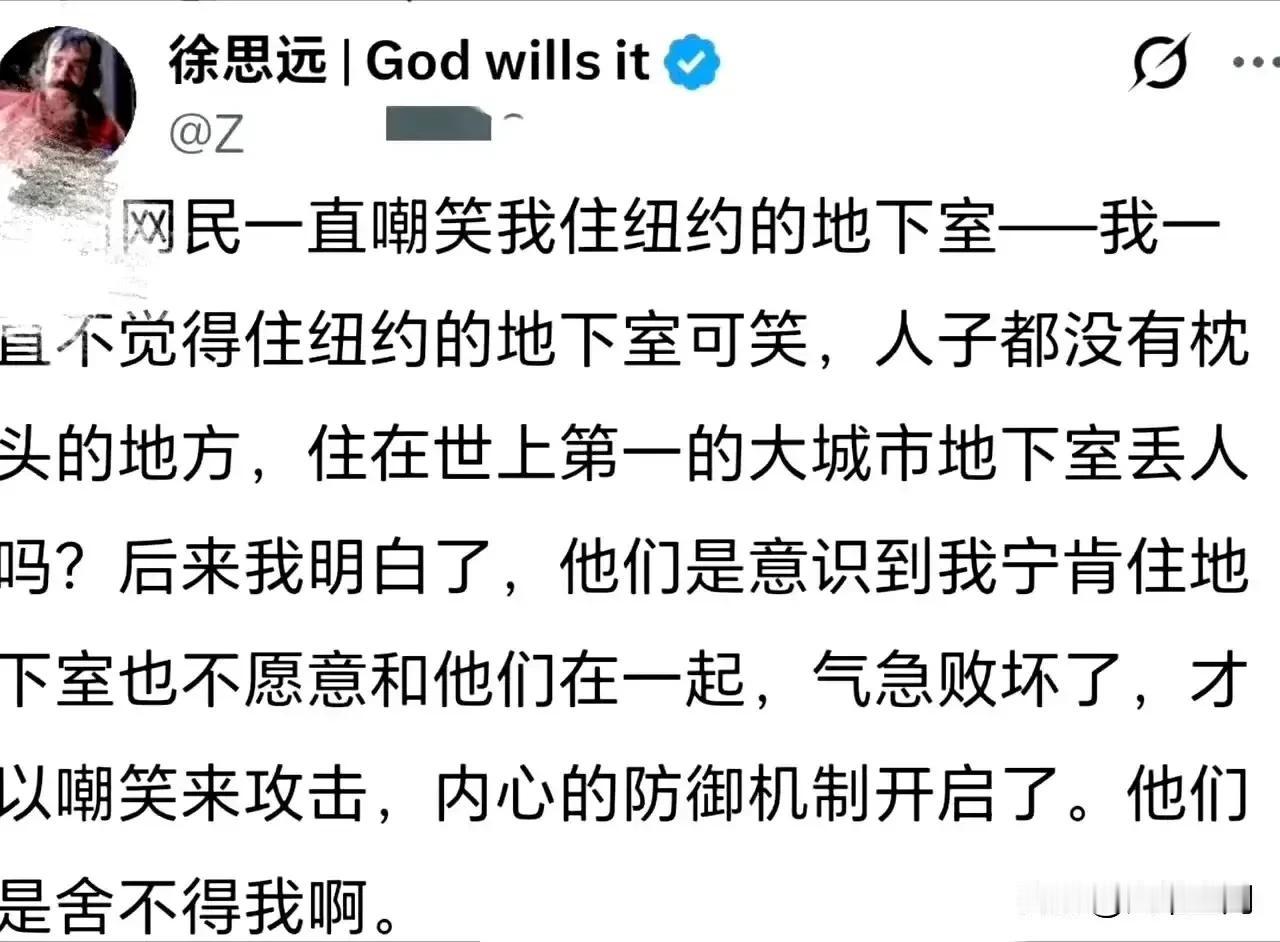 徐思远一个住纽约地下室都感到是在天堂一样幸福的润人,没想到被3美元的纽约地铁费给整破防了,纽约的新市长刚上任,就宣布纽约的公交车和地铁票价涨到3美元,就是那个在非洲出生的穆斯林的印度裔,而且选举的时候主张社会主义,可谓是buff叠满了,结果上来第一件事宣布涨价,虽然有点打脸,但是徐思远这种住在纽约地下室都觉得很幸福的润人,怎么能因为这点小事就在网上抱怨,不符合它一贯的风格,小编觉得这些润人是真的要每天做公交或者地铁,所以票价涨到3美元,对它们真的影响很大,所以润人也受不了要抱怨一下!