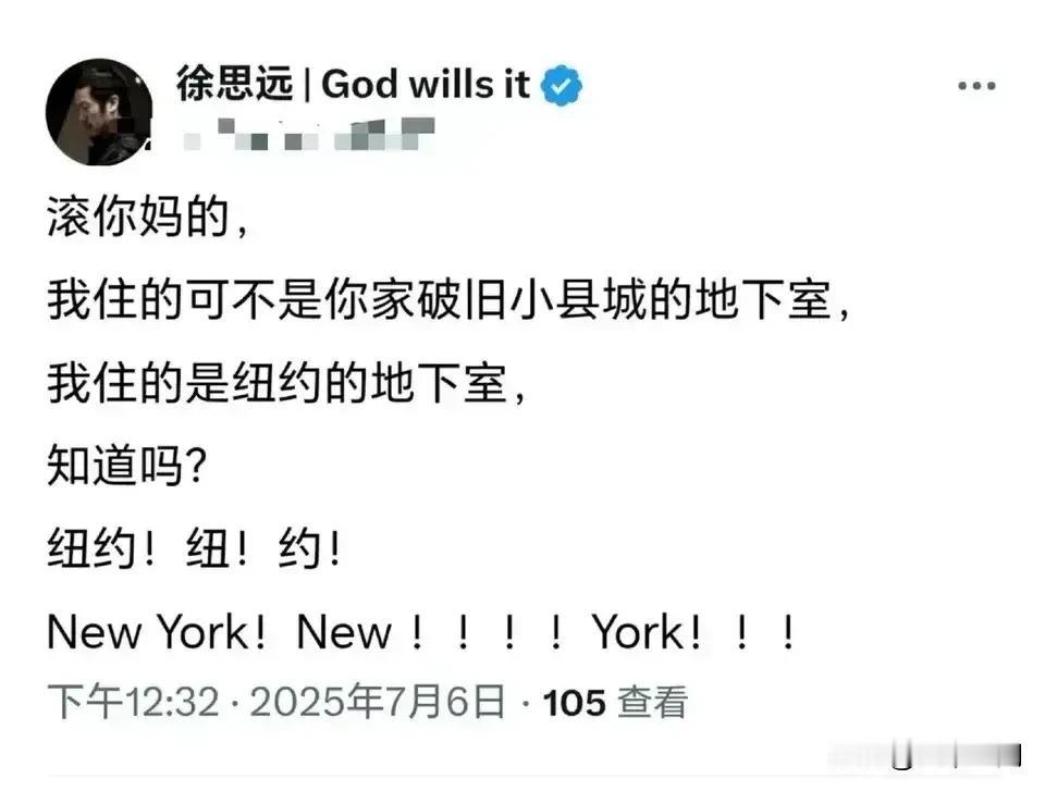 徐思远一个住纽约地下室都感到是在天堂一样幸福的润人,没想到被3美元的纽约地铁费给