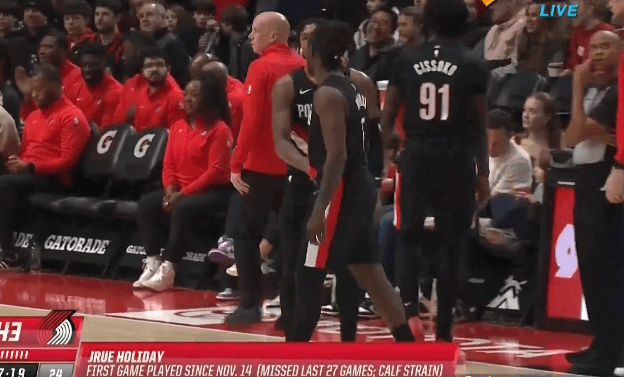 第二节比赛中,朱-霍勒迪第二节替补上场,时隔27场比赛迎来复出。