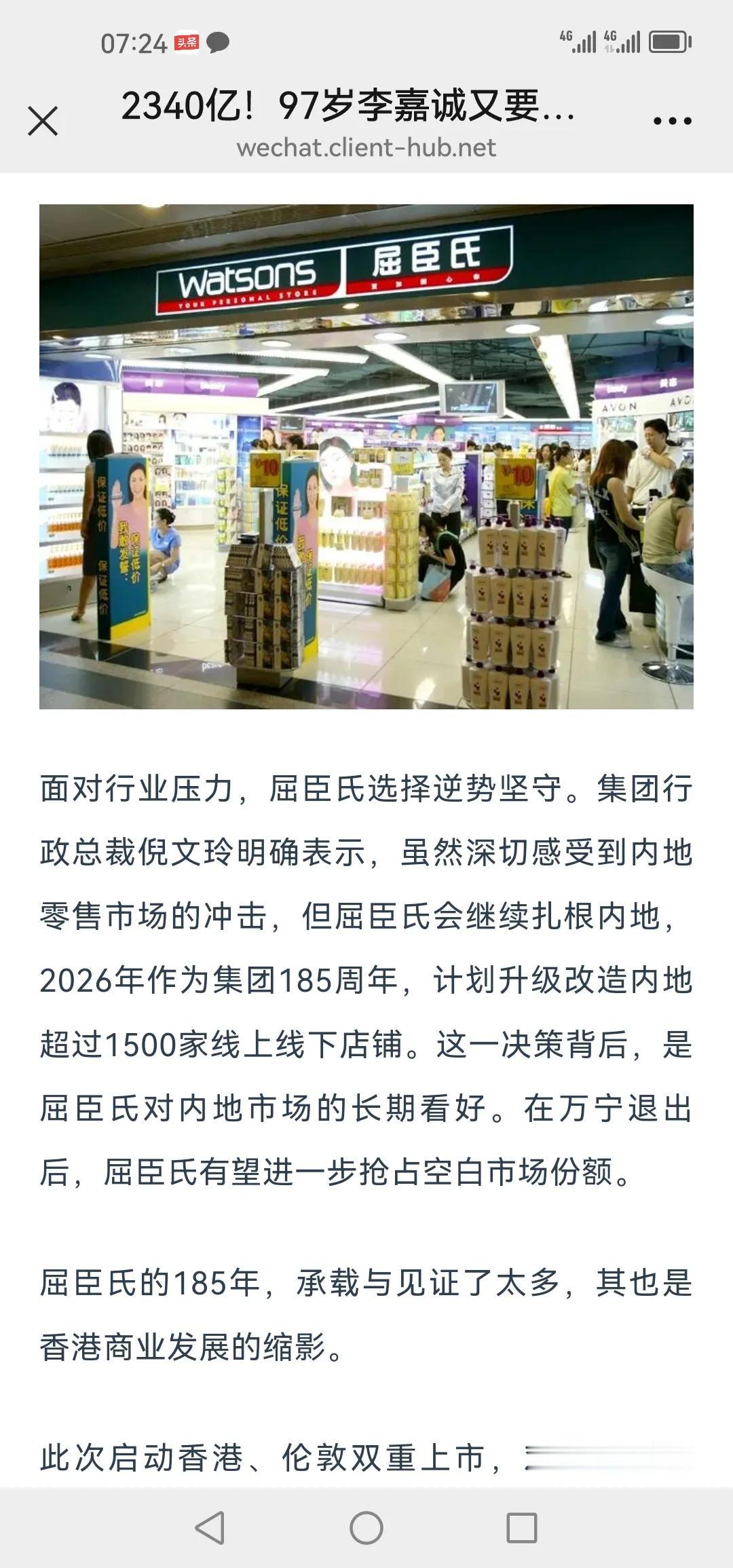 2340亿估值百年屈臣氏启动港英双重上市,或成零售业最大IPO之一!全球1.7万家店,能否再掀资本浪潮? (文化滋养游子心)企业香港上市 中英企业投资 香港环球集团 中英企业投资 香港环球集团 屈臣氏集团 港股消费IPO 伦敦华人公司 汇丰英国 香港外企