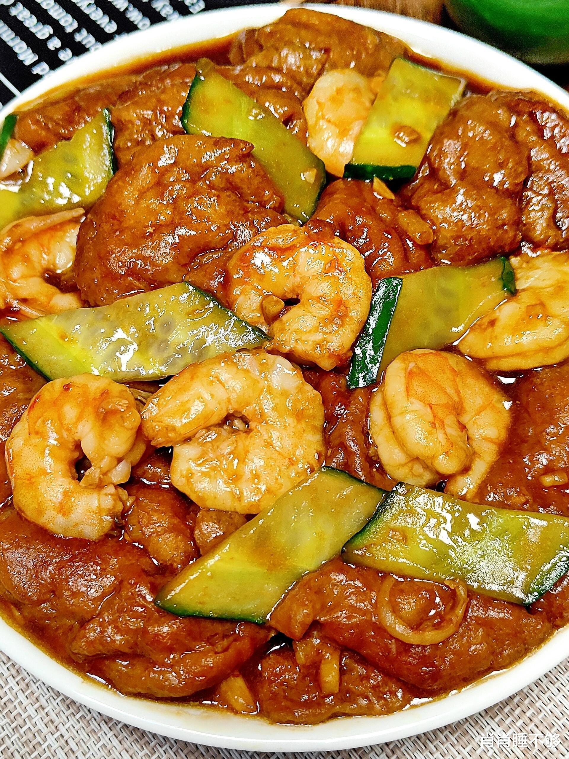 盛到盘子里,面筋吸满了浓郁的汤汁,咬一口,鲜香四溢;虾仁鲜嫩弹牙,黄瓜清脆爽口,每一口都是满足。这道菜既有主食的饱腹感,又有蛋白质和蔬菜的营养,特别适合一家人围坐在一起享用。希望大家都能试试,相信它会成为你家餐桌上的常客!