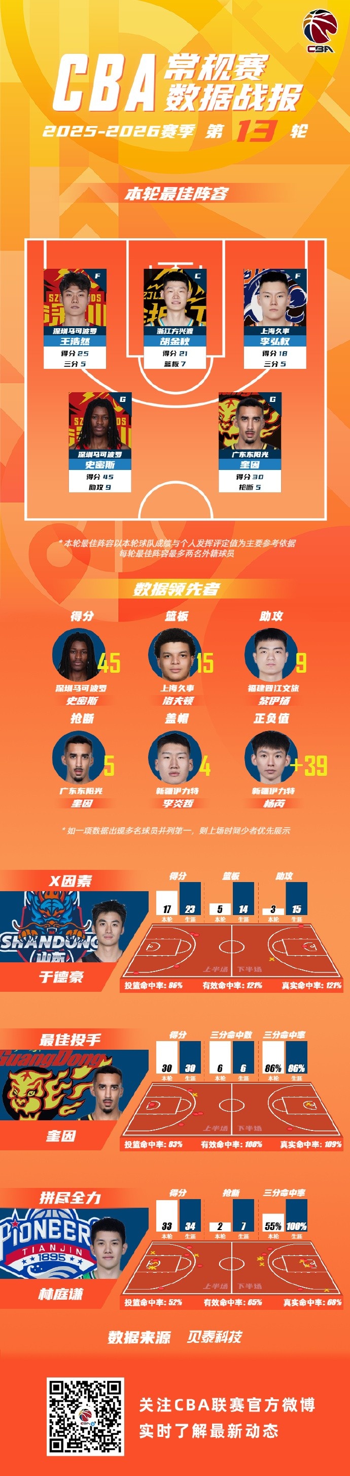第13轮X因素球员由来自山东高速篮球俱乐部的获得;