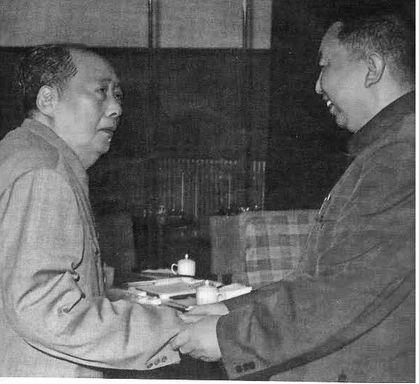 下面是难得一见的华国锋和毛主席在一起的照片 华国锋之所以被毛主席看中大概率是因为他的踏实肯干,爱调查研究不爱搞阴谋诡计这些良好品德正合毛主席当时要求人们做到的“做老实人,说老实话、办老实事”的条件,再加上他做出的有目共睹的成绩。 一图是华国锋在1969年在基层调研时被毛主席紧急找回到省府长沙与会时见面的一幕。 二图是毛主席在1976年病重期间与华国锋于书房的会见交谈。