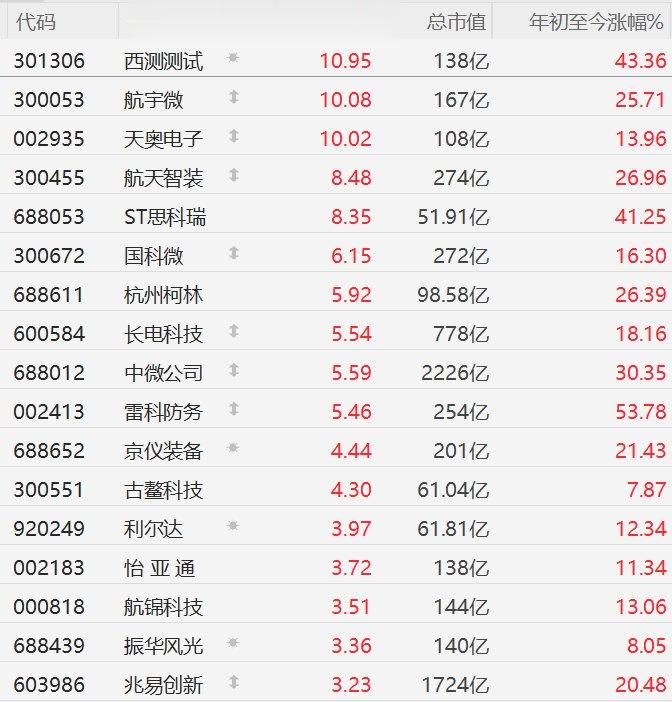 格隆汇1月12日|A股市场存储芯片概念股集体走强,其中,西测测试、航宇微涨超10%,天奥电子10CM涨停,航天智装涨超8%,国科微涨超6%,杭州柯林、长电科技、中微公司、雷科防务涨超5%,兆易创新涨超3%。