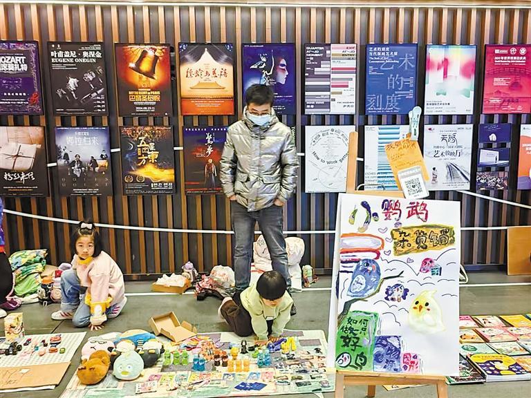丝路商街现场热闹非凡,“喜阅好书跳蚤市集”与“时光杂货铺”交换活动同步开启。各组家庭摆摊售卖闲置旧书、玩具,自主定价交易,既推动了物品循环利用,也培养了孩子的环保意识。大家以书易书、以物换物,畅聊阅读心得,在暖心互动中集齐“喜阅”印章,定格元旦美好瞬间。同街区的“手造好‘饰’·非遗手作工坊”里,孩子们在老师指导下亲手制作传统手工艺品,在动手实践中感受中华优秀传统文化魅力,增强文化认同感与传承意识。